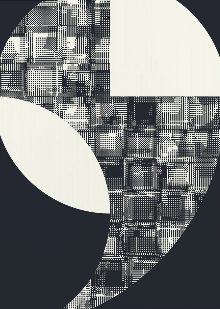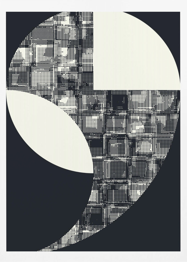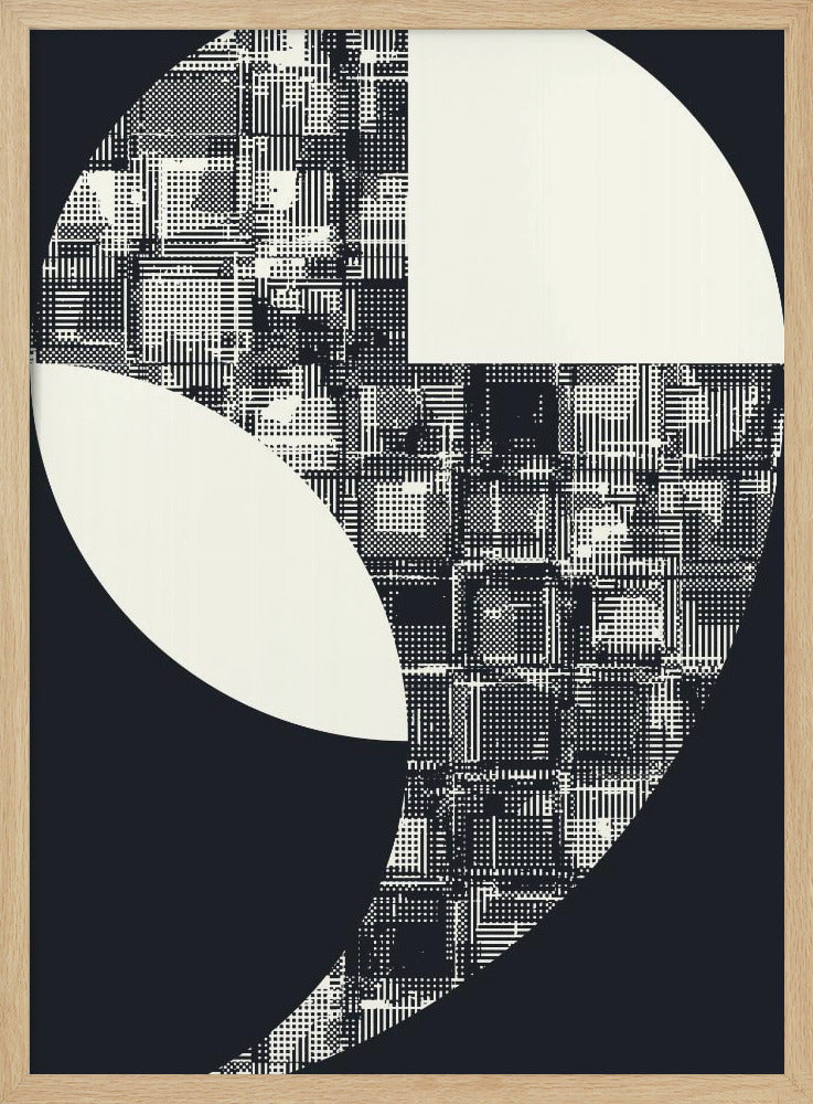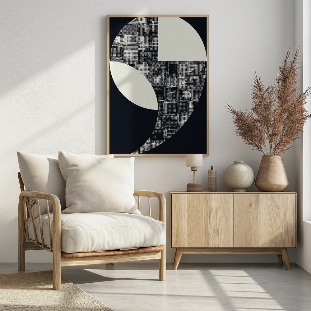 Konstnären Petr Strnad presenterar "Concept 84", en fängslande poster som utforskar geometrisk abstraktion. Med en dynamisk komposition av cirklar och former i svart och vitt, skapar detta konstverk en modern och sofistikerad känsla. Den grafiska designen och den distinkta Bauhaus-inspirerade estetiken gör den till en perfekt detalj för att lyfta din inredning och ge rummet karaktär.