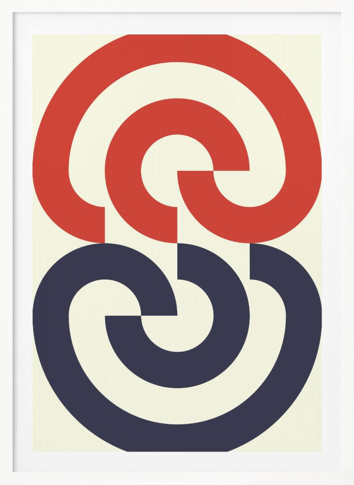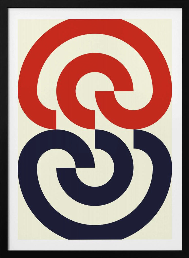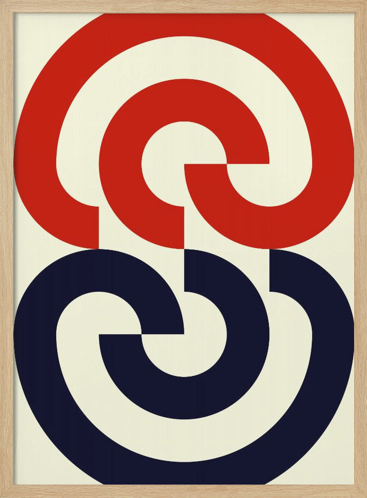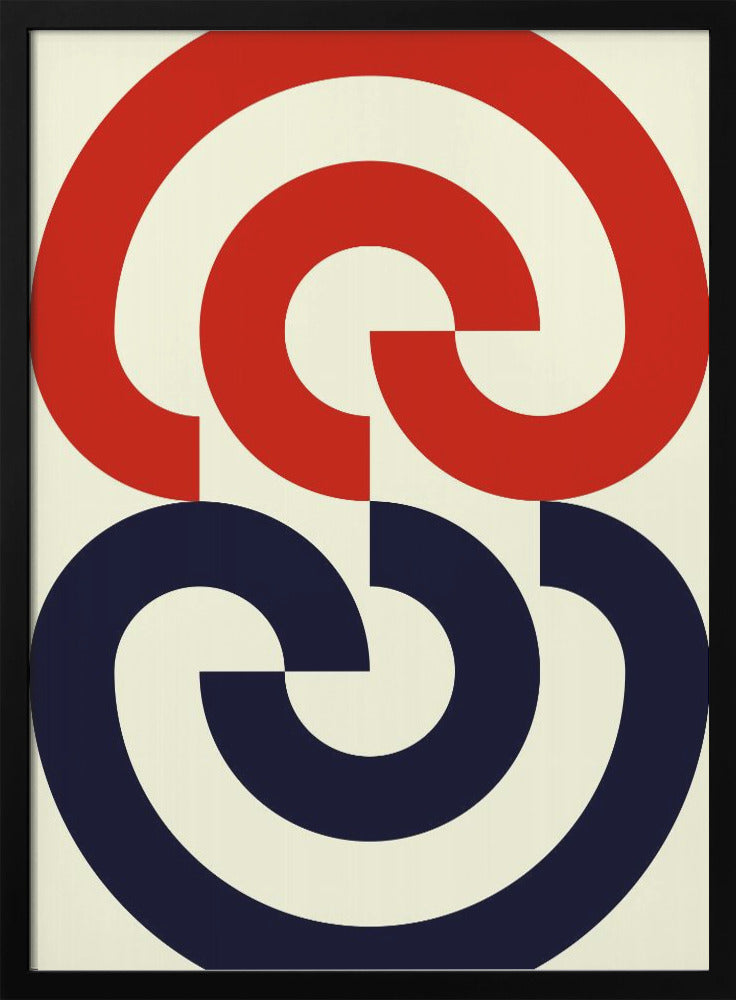 Upptäck "Concept 92" av Petr Strnad, en modern affisch som fångar ögat med sin abstrakta och geometriska design. Denna dynamiska illustration, inspirerad av Bauhaus estetik, presenterar en harmonisk komposition av cirklar i djupa nyanser av blått och rött. Ett perfekt konstverk för att ge ditt hem en dekorativ och stilfull touch med en touch av samtida konst.