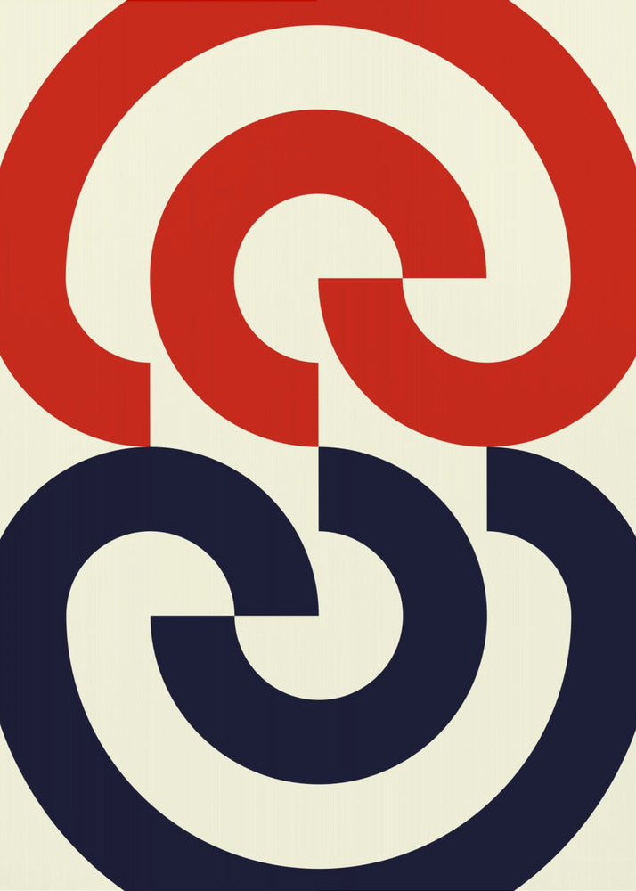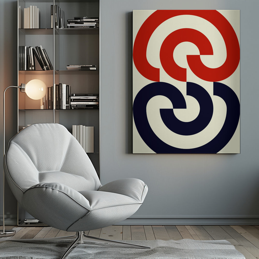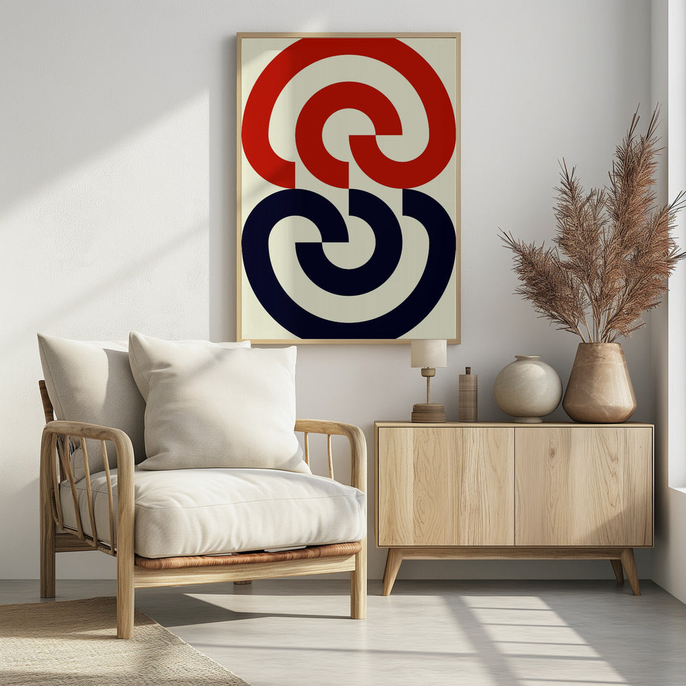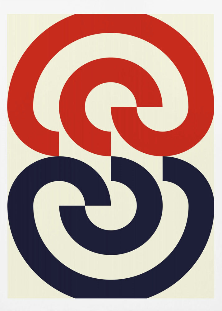Upptäck "Concept 92" av Petr Strnad, en modern affisch som fångar ögat med sin abstrakta och geometriska design. Denna dynamiska illustration, inspirerad av Bauhaus estetik, presenterar en harmonisk komposition av cirklar i djupa nyanser av blått och rött. Ett perfekt konstverk för att ge ditt hem en dekorativ och stilfull touch med en touch av samtida konst.