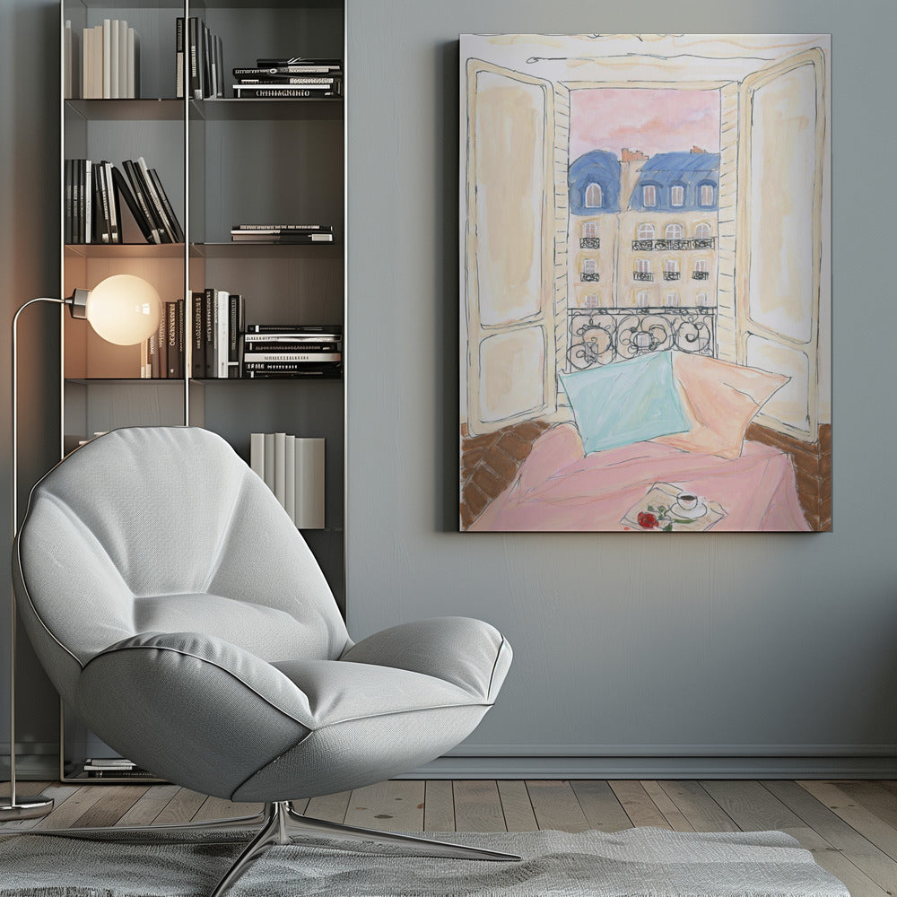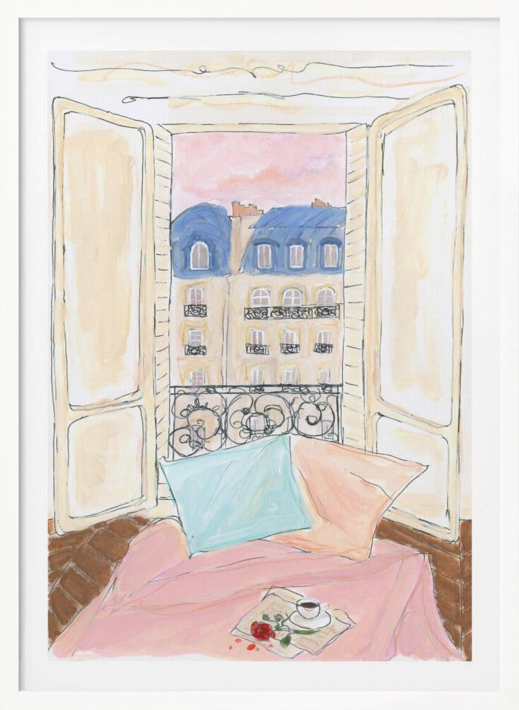 Låt dig förtrollas av Katharina Puritschers konstverk "Cozy Apartment", en charmig representation av Paris anrika arkitektur. Denna affisch fångar de karaktäristiska byggnaderna och taklandskapen med en detaljrik och målerisk stil, som ger en känsla av lugn och tidlös skönhet till ditt hem.