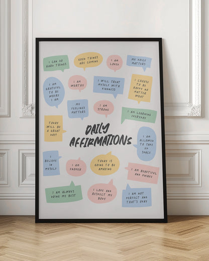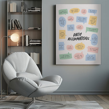 Ge dig själv en daglig dos av positivitet med denna inspirerande poster från KsanaKalpa. Denna underbara konsttryck, med dess lugnande pastellfärger och tydliga, motiverande text, är perfekt för att skapa en harmonisk och upplyftande atmosfär i varje rum. Enkel men kraftfull, den påminner dig om att omfamna tillväxt och lycka varje dag.