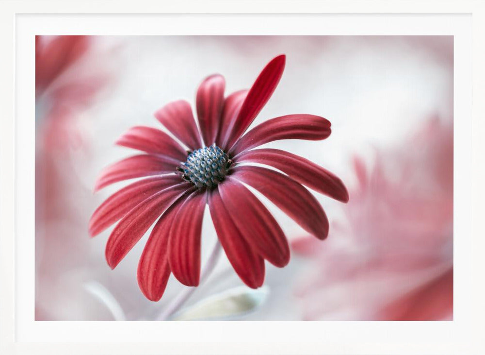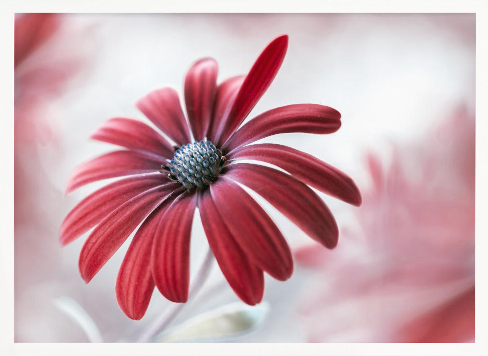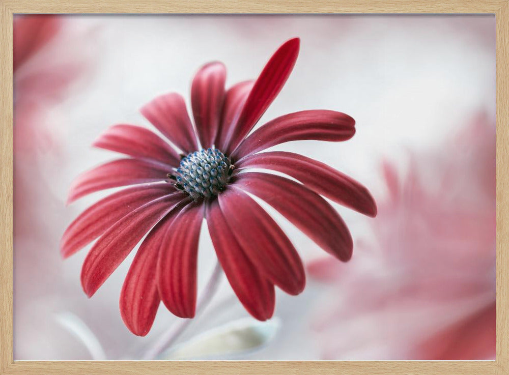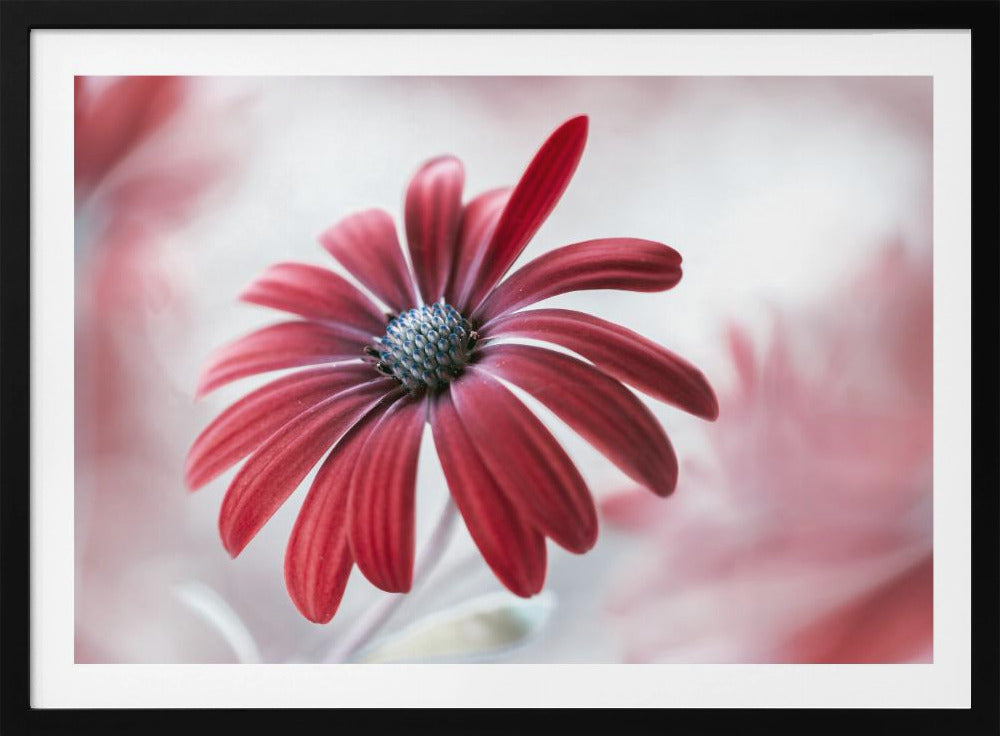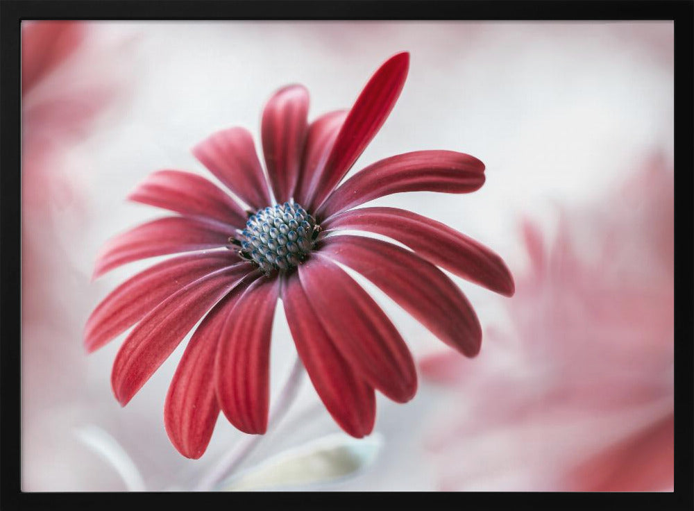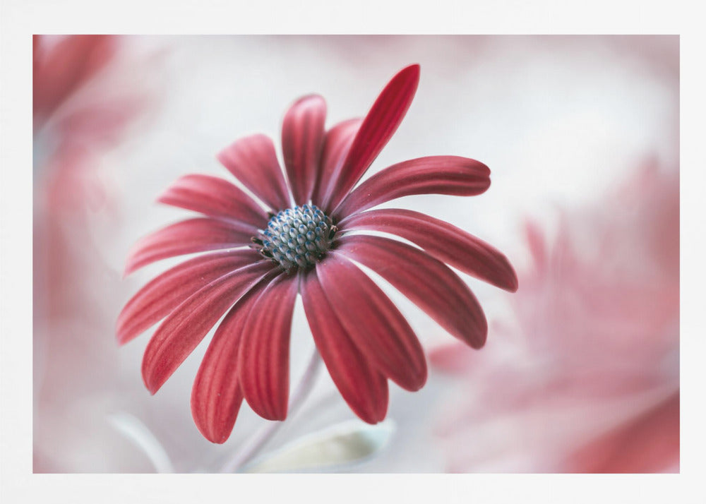 Mandy Dishers förtrollande poster "Daisy" fångar ögonblicket med en enastående närbild av en rosa tusensköna. Den mjuka bakgrunden med bokeh-effekt framhäver blommans delikata kronblad och livfulla färger, vilket skapar en känsla av lugn och sommarglädje. Perfekt för att addera en touch av botanisk skönhet till ditt hem.