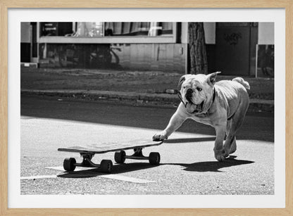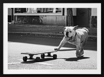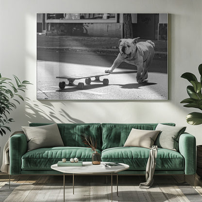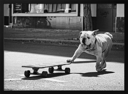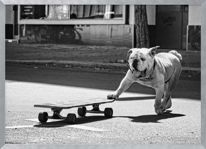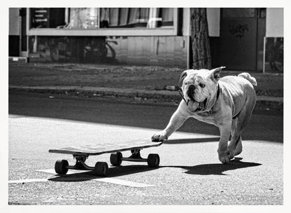 Fånga glädjen och livligheten i Claudia Leverentz underbara konstverk "Dogs just want to have fun". Denna affisch avbildar en charmig hund med tungan ut, redo att kasta sig ut på ett skateboardäventyr, och utstrålar ren glädje och lekfullhet.
