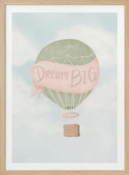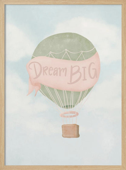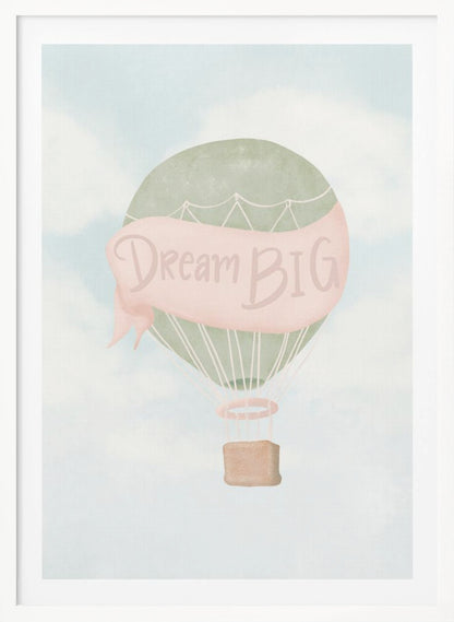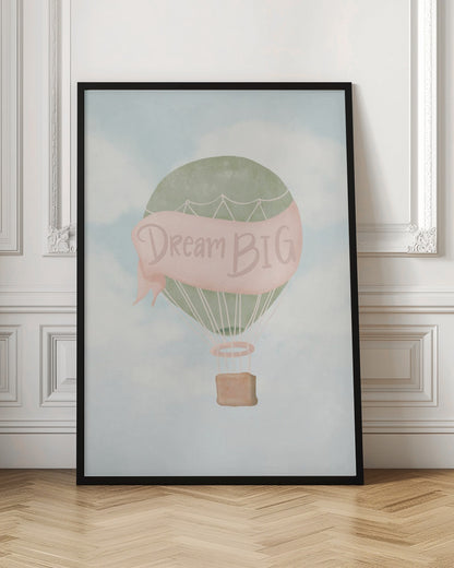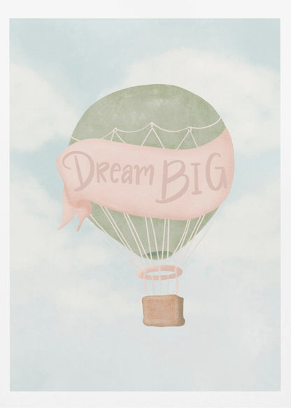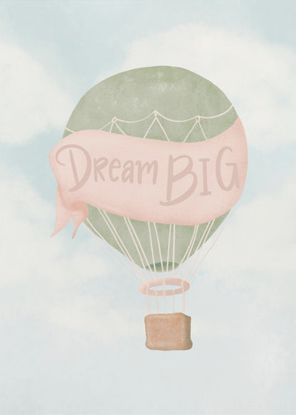Låt dig inspireras av Aminah Eleonoras underbara konstverk "Dream Big Pink", en affisch som fångar fantasin. Denna charmiga illustration av en varmluftsballong som svävar bland molnen mot en mjuk pastellhimmel skapar en drömmande atmosfär. Med sitt inspirerande citat "Dream Big" och ljuvliga färger är den perfekt för att uppmuntra stora drömmar i barnrummet eller babyrummet.