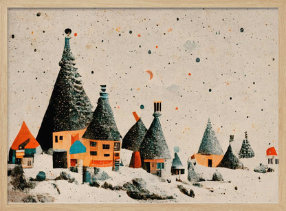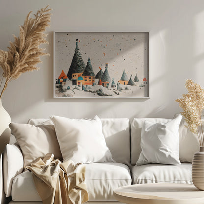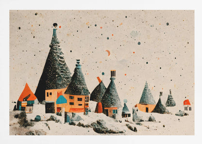 Skapa magi i barnrummet med 'Fairy Village' – en förtrollande poster från Treechild. Detta konstverk fångar en mysig miniatyrvärld fylld av charmiga hus, snötäckta träd och glittrande stjärnor under en vinternatt. Den måleriska stilen och de jordnära färgerna ger en lugnande och fantasifull känsla som passar perfekt för att inspirera drömmar och sagor.