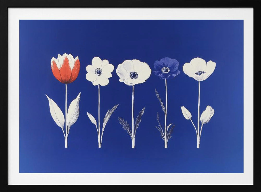Upptäck den förtrollande postern 'Five Flowers' skapad av den talangfulle konstnären Andreas Magnusson. Detta konstverk fångar skönheten i naturens flora med dess lugnande blåa toner och delikata blommotiv. En perfekt tavla för att addera en känsla av ro och elegans till vilket rum som helst, och en hyllning till blommans tidlösa charm.