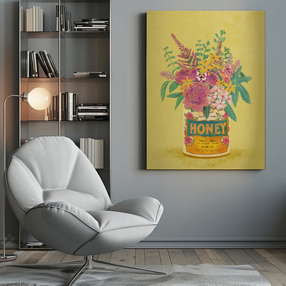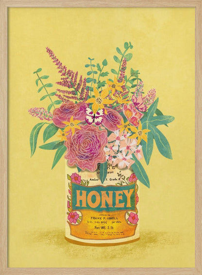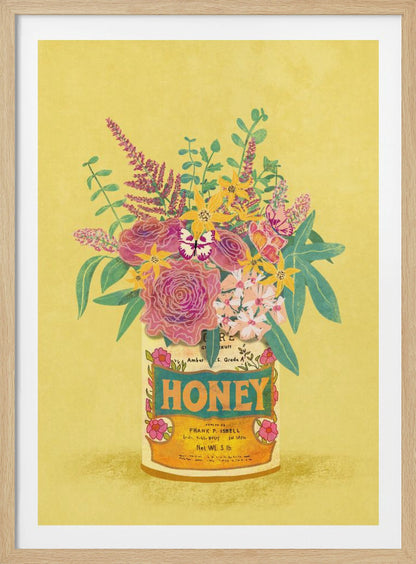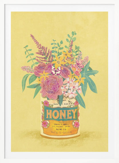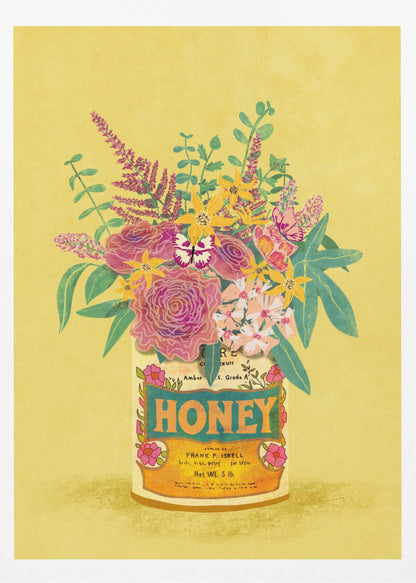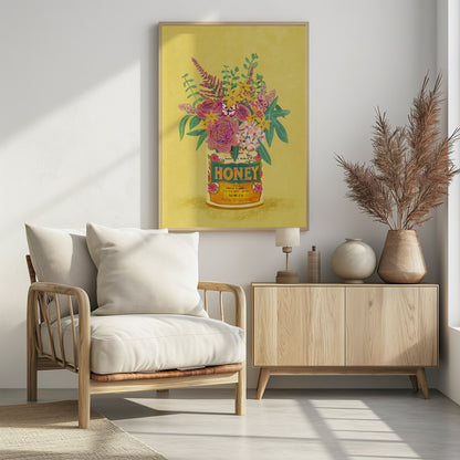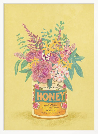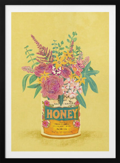 Fånga skönheten med Raissa Oltmanns konstverk "Flowers In a vintage Honey Can". Denna poster utstrålar en nostalgisk charm med sina utsökta blommor och en fjäril som vilar på en vintage honungsburk. Den digitala konstens detaljrikedom och de mjuka färgerna skapar en tidlös och fräsch atmosfär, perfekt för att försköna varje rum med botanisk elegans och en känsla av lugn.