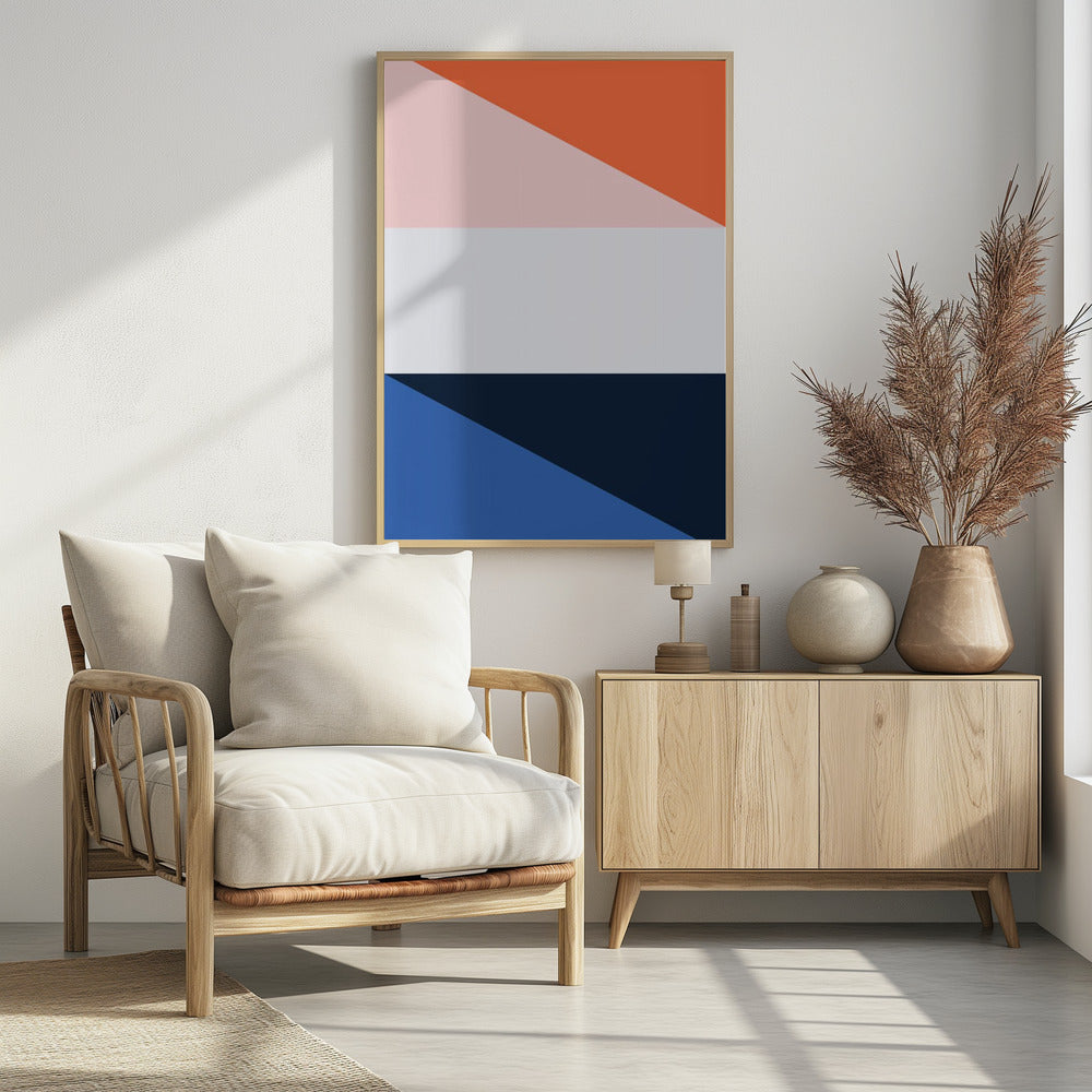 Oju Designs 'Four Triangles' poster är en hyllning till den geometriska abstraktionen och Bauhaus-stilens tidlösa estetik. Verket presenterar fyra distinkta trianglar i en dynamisk komposition som leker med form, färg och kontrast. Varje triangel bidrar till en harmonisk helhet, skapande en visuell balans som fångar ögat. Detta konsttryck blir en modern och stilren detalj i varje hem, perfekt för dig som uppskattar minimalistisk grafik och tidlös design.