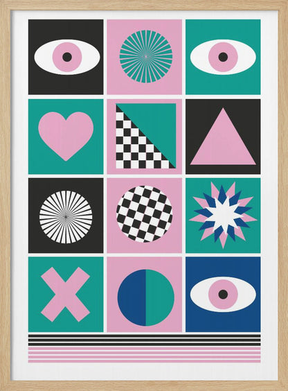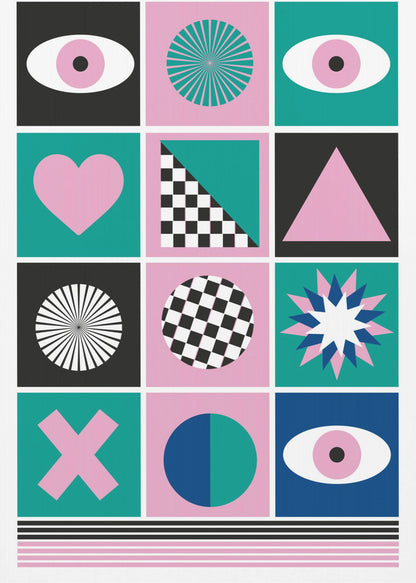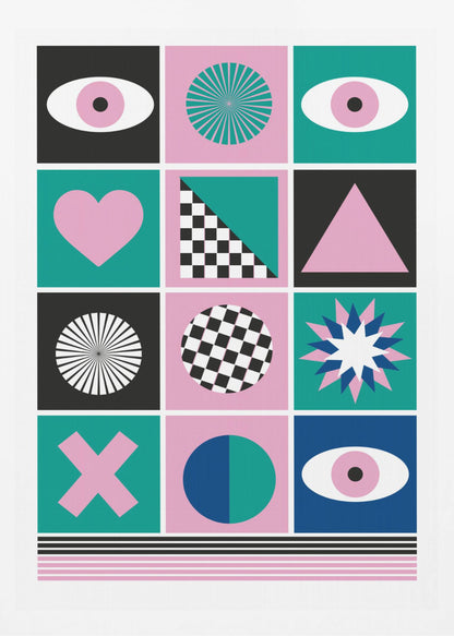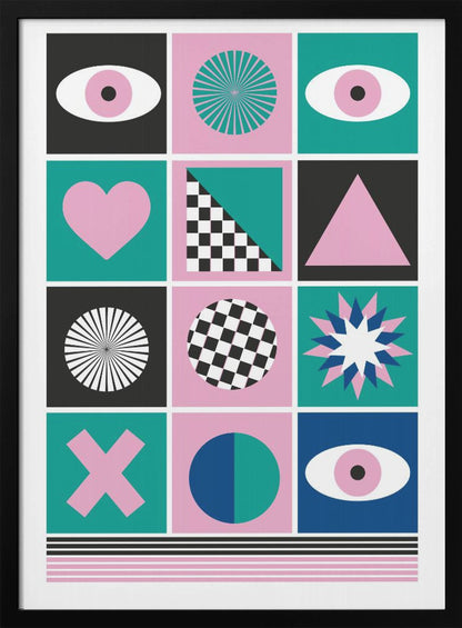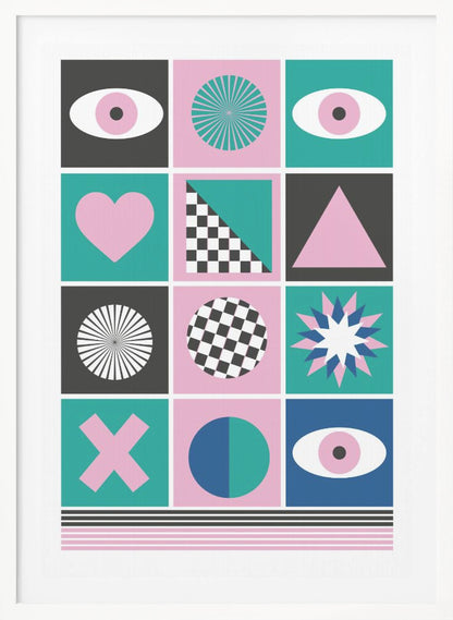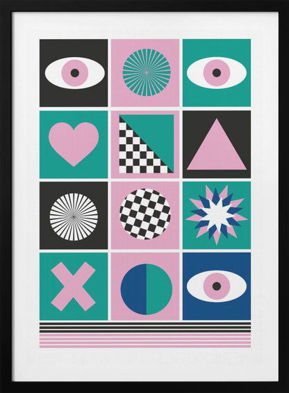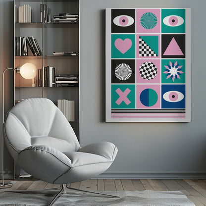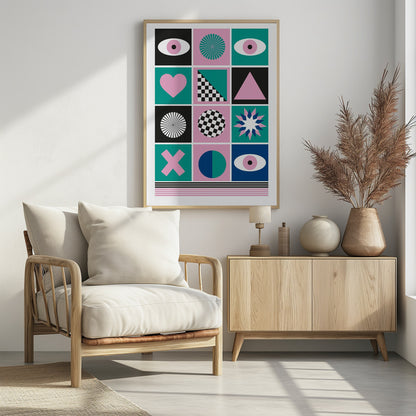 I 'GEOMETRIC III' presenterar konstnären SERGIO ORTIZ en fängslande värld av geometriska former och livfulla färger. Denna abstrakta affisch, med inslag av blått, grönt och rosa, är en modern hyllning till grafisk design och ger varje rum en dynamisk och stilren känsla. Perfekt för den som älskar bauhaus-inspirerad konst med en fräsch twist.