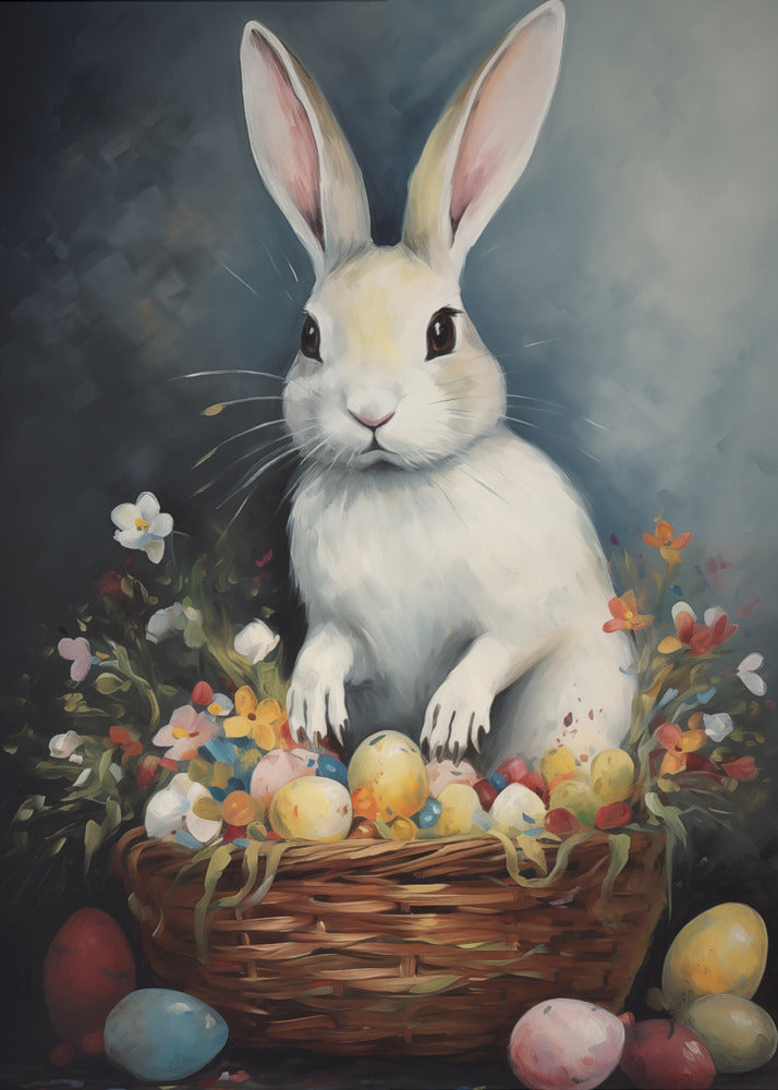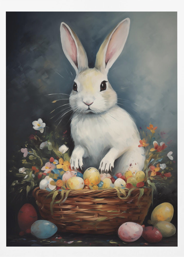 Fira påsken med denna charmiga poster "Happy Easter No 4" skapad av Andreas Magnusson. Detta konstverk fångar påskens glädje med en bedårande kanin omgiven av vackra botaniska element och färgstarka påskägg. De mjuka färgerna och den detaljerade illustrationen skapar en varm och inbjudande känsla, perfekt för att förgylla ditt hem under påskhelgen.