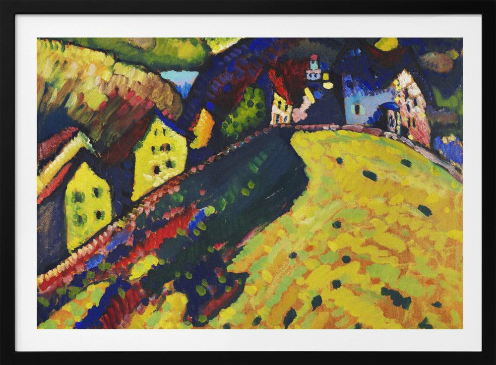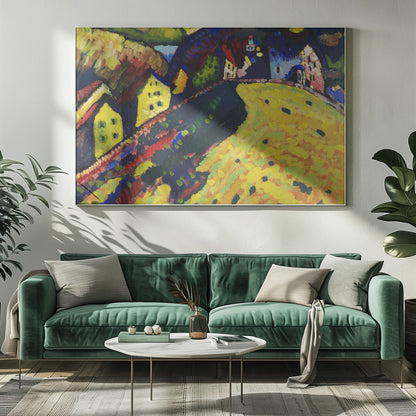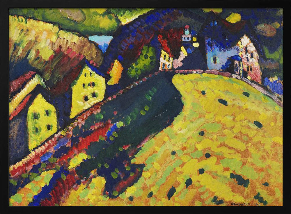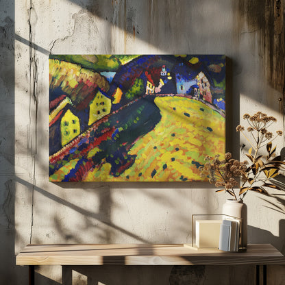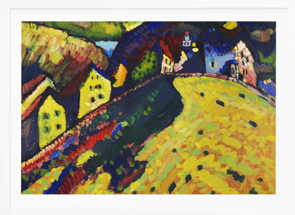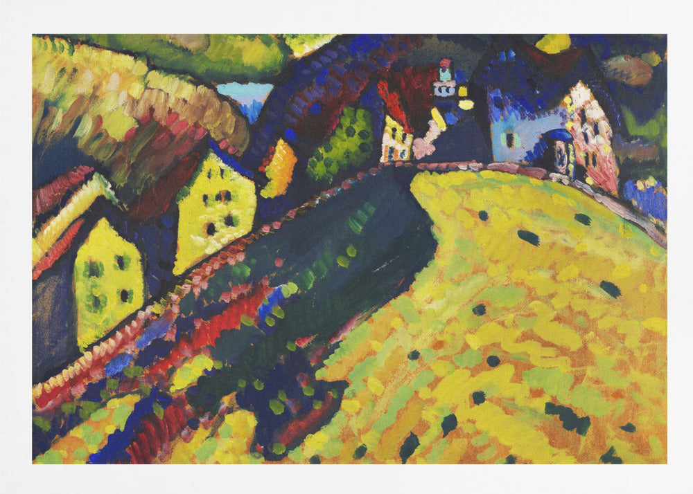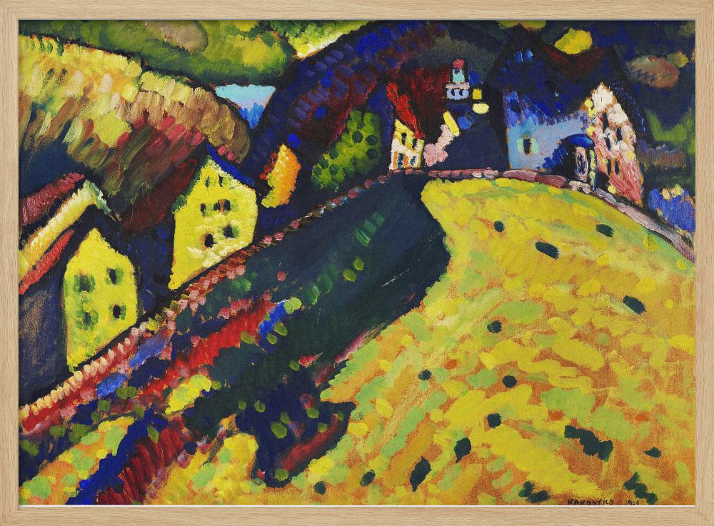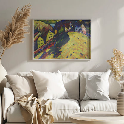 Upplev modernismens puls med "Houses At Murnau (1909)", ett banbrytande verk av ingen mindre än Wassily Kandinsky. Denna poster fångar Kandinskys unika förmåga att utforska färg och form bortom traditionella gränser. Med djärva penseldrag och livfulla färgfält skapas en abstrakt men ändå igenkännlig bild av byn Murnau, som vittnar om konstnärens tidiga steg mot ren abstraktion. Ett mästerverk som berikar varje rum.