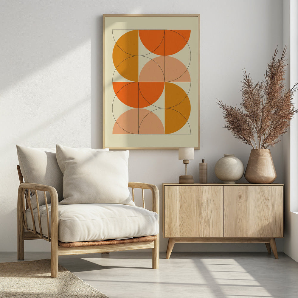 Jazzberry Blues "Imaginary 2" är en abstrakt affisch som bjuder in till en värld av lekfull geometri och harmoniska färgkombinationer. Med sina mjuka former och distinkta linjer skapar konstverket en minimalistisk men ändå fängslande yta. De omsorgsfullt utvalda nyanserna av gult, orange och rosa smälter samman och ger en känsla av lugn och modern elegans. Ett perfekt inslag för att förhöja vilken vägg som helst med en touch av samtida konst.