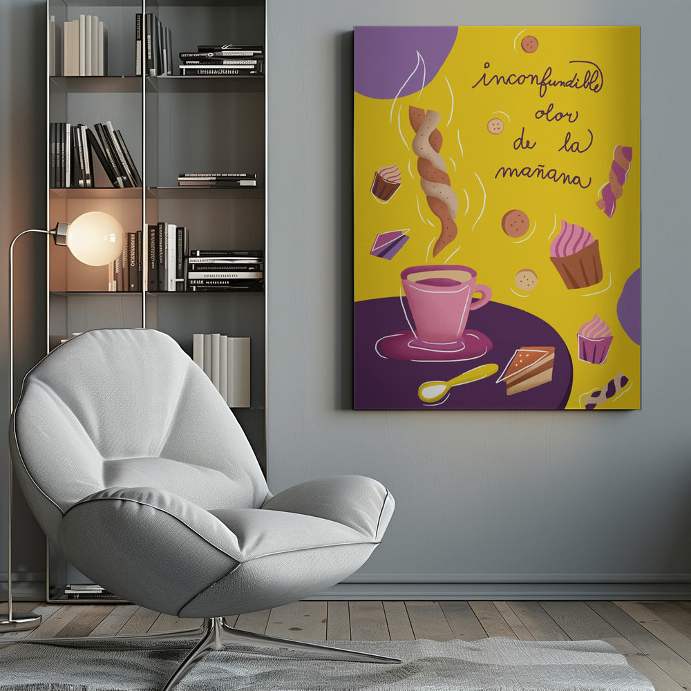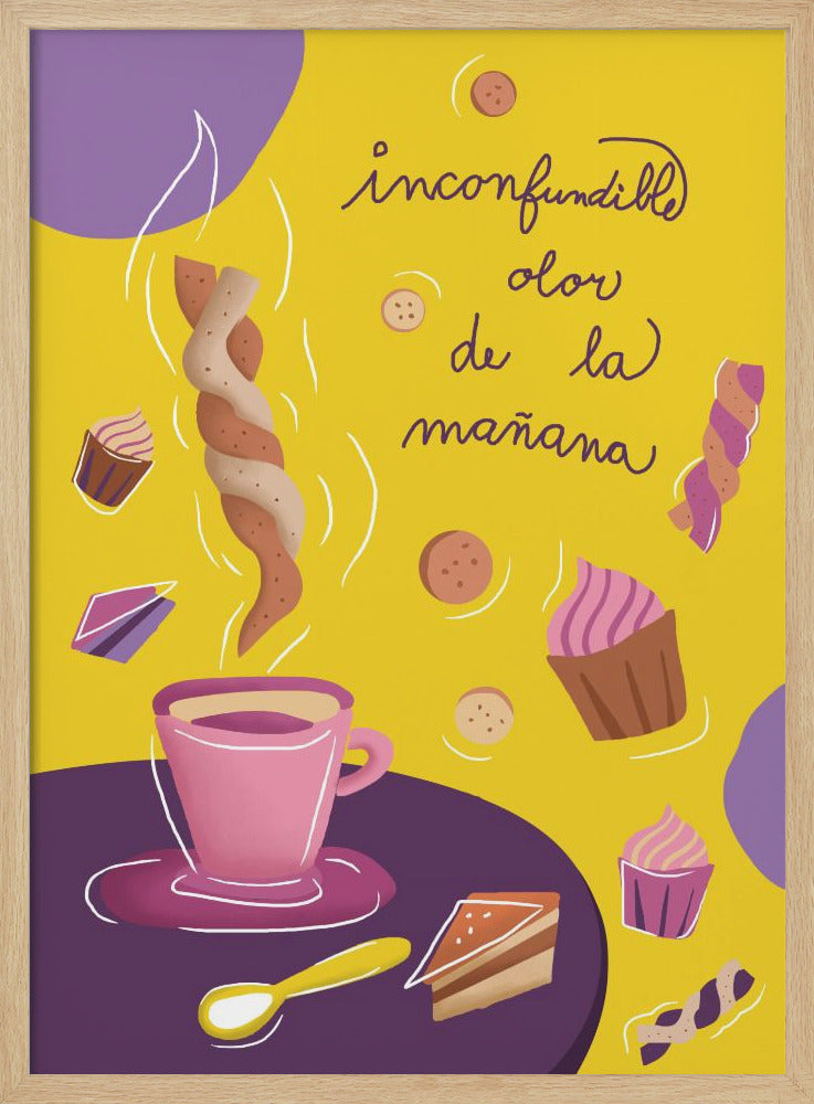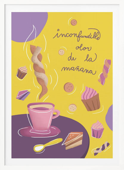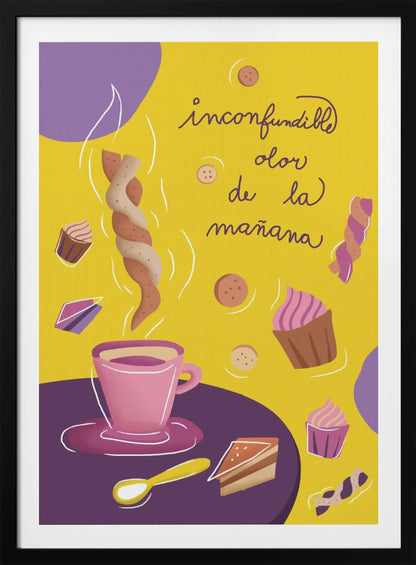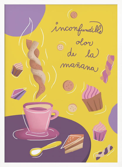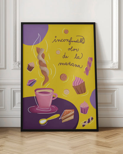 Upptäck den fängslande grafiken i "Inconfundible Yellow", skapad av den talangfulla Magdalena Herichova. Detta konsttryck bjuder på en härlig komposition av gula och lila toner, som skapar en lekfull och modern känsla. Med stiliserade koppar och mat på ett bord är det en perfekt detalj för köket eller matplatsen som älskar design och färg.