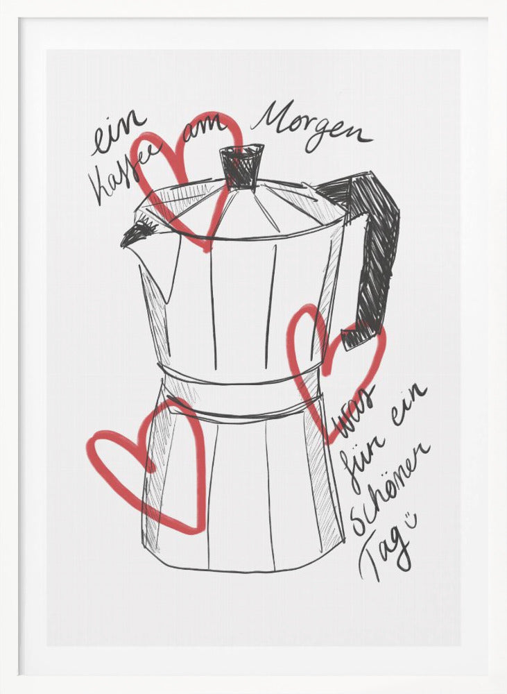 Upplev den lugna morgonstunden med denna vackra poster "Kaffee am Morgen" av konstnären Athene Fritsch. Det ljusa och inbjudande motivet fångar essensen av en perfekt kopp kaffe, idealisk för köket eller matplatsen. Den varma färgpaletten och den höga kontrasten skapar en uppfriskande och energigivande känsla som förgyller varje frukost.