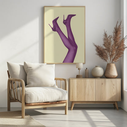 Pictufy Studio III presenterar "Kick Up Your Heels #05", en livfull poster som fångar ögat med sin lekfulla och retroinspirerade estetik. Med en kvinna i trendiga lila klackar mot en poppig gul bakgrund, utstrålar detta konstverk en härlig vintagekänsla. Den kreativa redigeringen lyfter fram färgkontrasterna och skapar ett djärvt, stilfullt uttryck som för tankarna till mitten av seklet. Perfekt för att addera en färgklick och personlighet till vilket rum som helst.