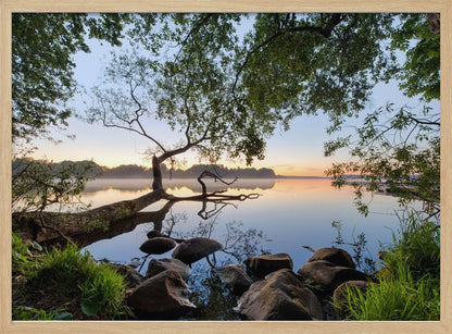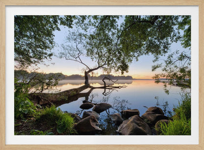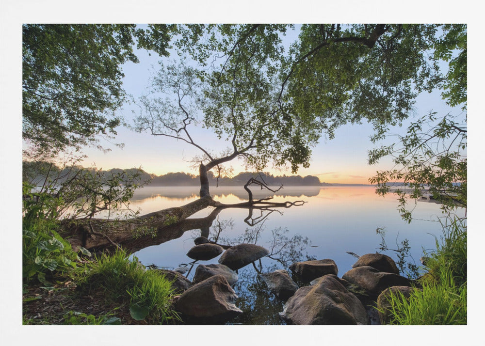 Fånga den rofyllda skönheten i "Lake view", en fantastisk poster från konstnären keller. Detta konstverk skildrar ett lugnt insjölandskap vid skymning, där vattnets speglingar skapar en djup harmoni. Perfekt för att förmedla stillhet och en avkopplande atmosfär i ditt hem.
