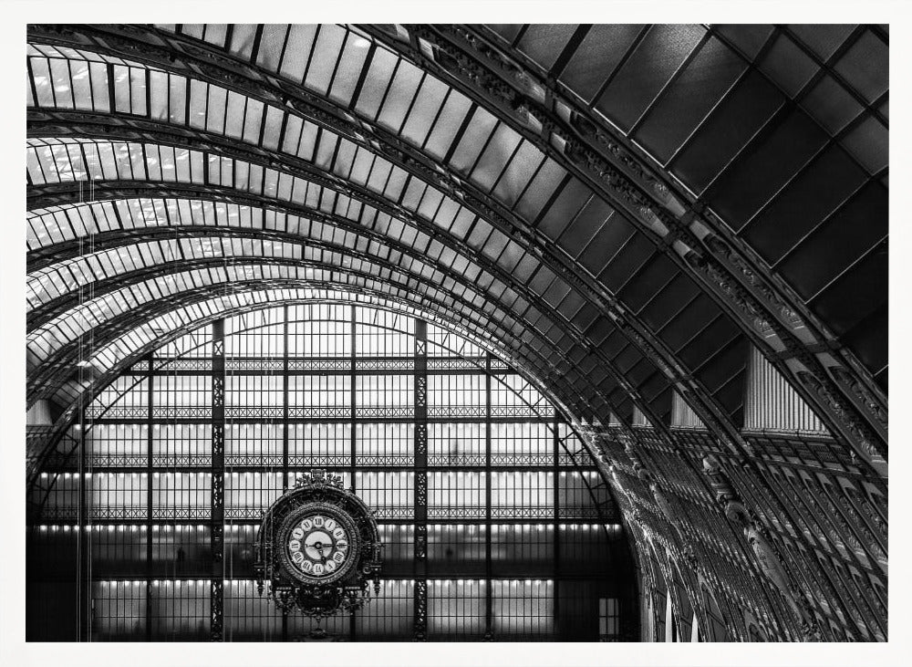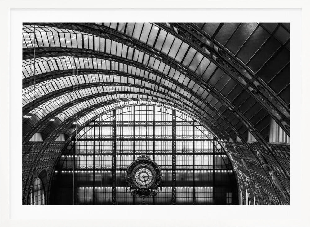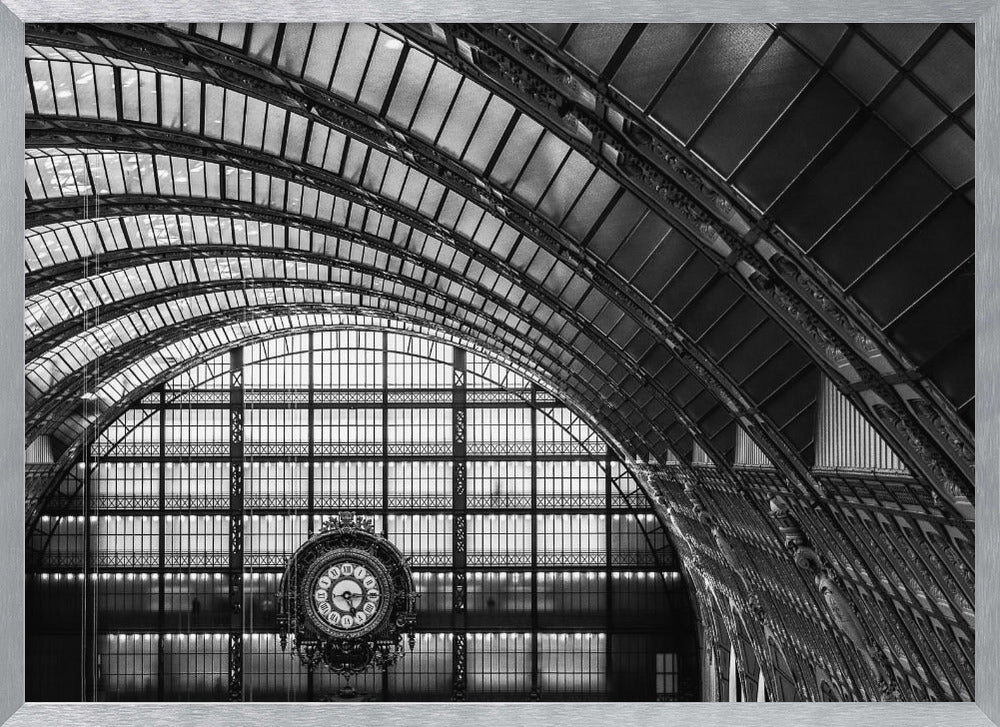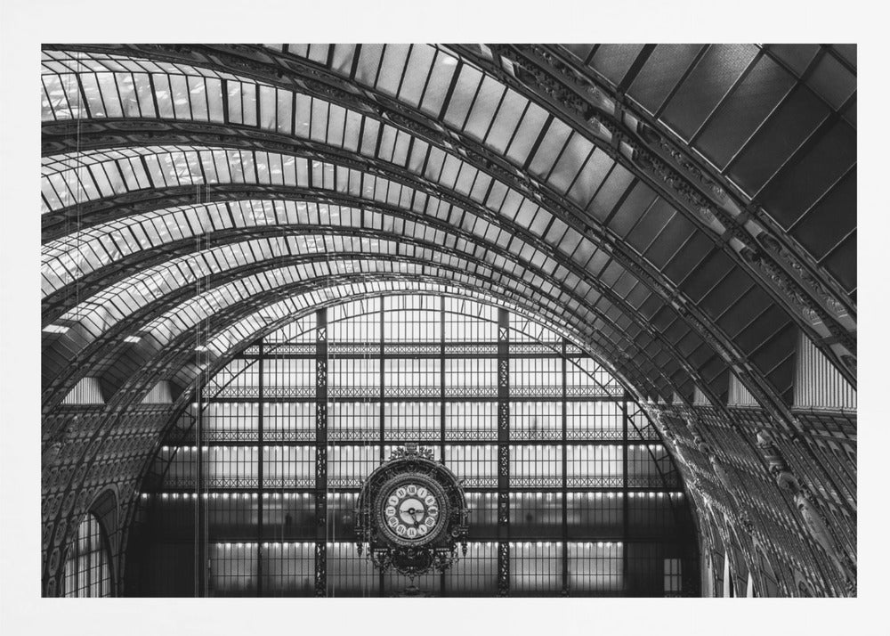 Denna fascinerande konstposter, L'escargot du temps, av Marc Pelissier fångar den ikoniska arkitekturen vid Musée d'Orsay i Paris med en tidlös monokrom estetik. Bilden framhäver byggnadens majestätiska bågar och den berömda stora klockan, vilket skapar en känsla av storslagenhet och tidlöshet. Ett perfekt konstverk för att förhöja varje interiör.