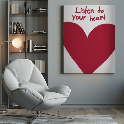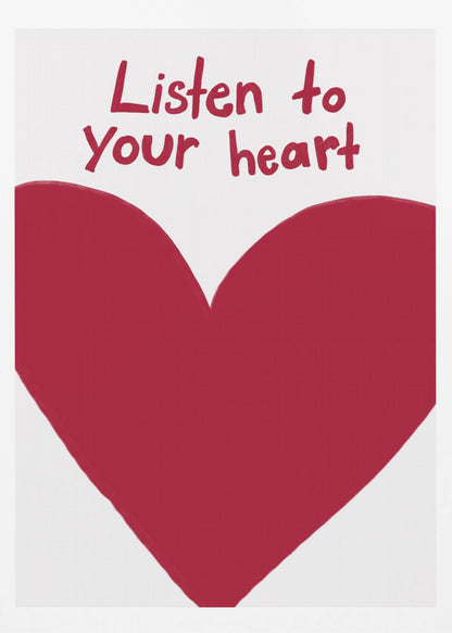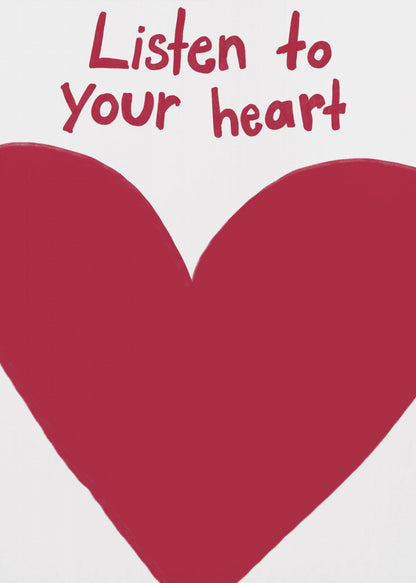Athene Fritsch har skapat denna inspirerande poster "Listen To Your Heart", en hyllning till kärlek och inre vägledning. Den stilrena designen med kraftfull typografi och ett livfullt rött hjärta mot en ljus bakgrund gör denna citatposter till ett iögonfallande konstverk. Ett perfekt motiv för att påminna dig om att följa ditt hjärta varje dag.