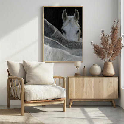 Upplev den fängslande blicken från Milan Malovrhs konstverk "Look - Poster / Art Print". Denna kraftfulla och abstrakta skildring av en hästs öga och man fångar betraktarens uppmärksamhet med sin intensitet och detaljrikedom. Ett unikt abstrakt djurporträtt som utstrålar både mystik och elegans, perfekt för att ge liv åt varje rum.