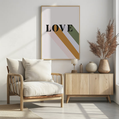 Aislinn Simmonds konstverk Love är en underbar hyllning till kärleken, fylld med livfulla färger och en lekfull grafisk stil. Denna affisch med ordet "Love" är både inspirerande och romantisk, perfekt för att förmedla värme och ömhet i ditt hem. Ett konstverk som berör hjärtat.