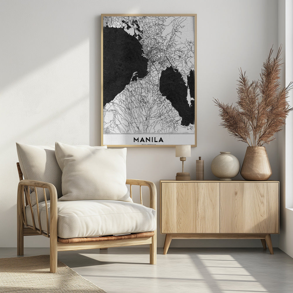Från StudioSix kommer denna fängslande poster av Manila, en modern tolkning av den pulserande filippinska huvudstaden. Med rena linjer och en stilren svartvit estetik fångar den stadens unika karaktär. Den grafiska designen ger en känsla av urban mystik och tidlös skönhet, perfekt för att addera en sofistikerad touch till ditt hem.