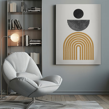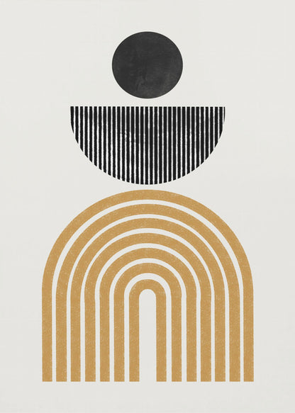 Denna "Midcentury Composition" poster från THE MIUUS STUDIO fångar essensen av tidlös elegans med sina mjuka bågar och geometriska former. En harmonisk blandning av guld och grå nyanser skapar ett lugn som för tankarna till mitten av seklet. Denna abstraktion tillför en sofistikerad touch till varje rum, perfekt för den moderna inredningen.