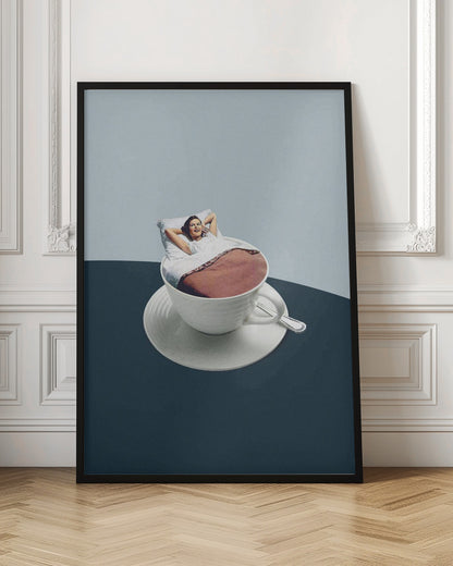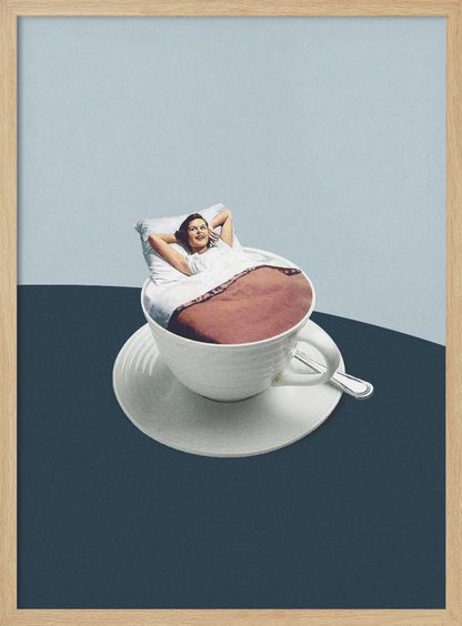 Upplev lugnet i "Morning rituals" av konstnären Maarten Léon. Denna affisch fångar en stillsam stund där en kvinna avnjuter sin morgondryck i sängen. Med sin unika kompositionsstil och varma färger skapar bilden en känsla av ro och glädje. Det är en perfekt detalj för att ge ditt hem en lugn och inbjudande atmosfär, med en hint av mid-century charm.