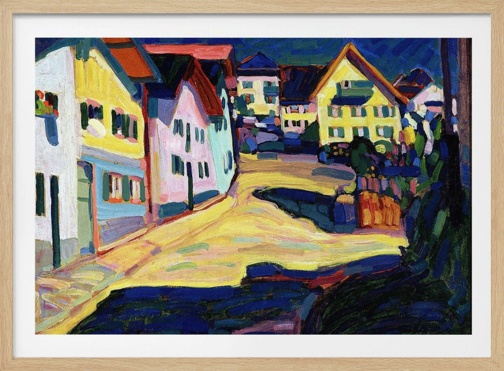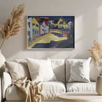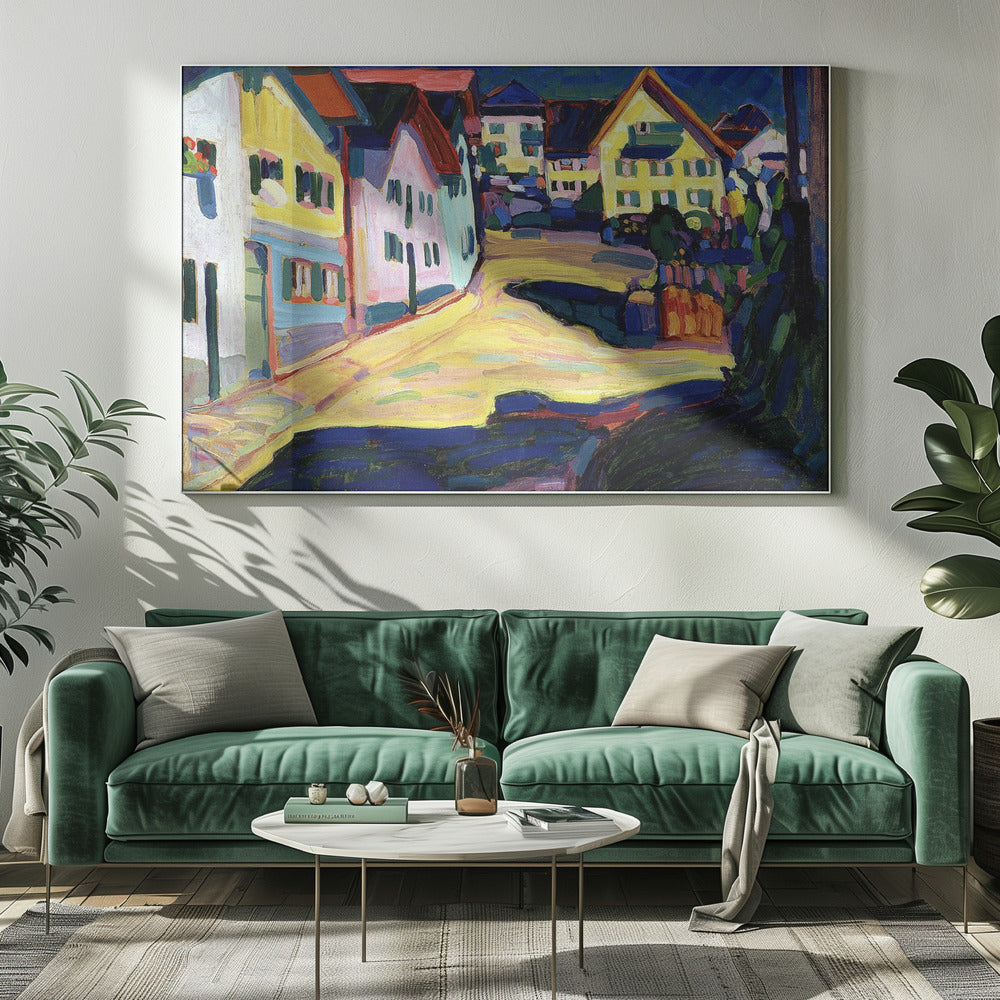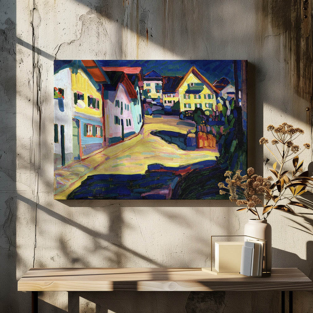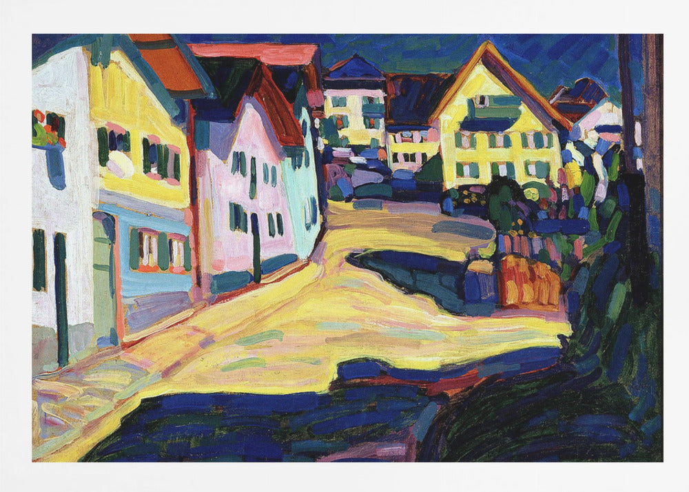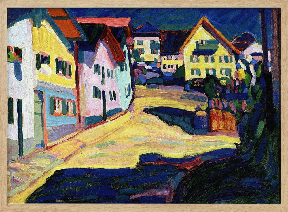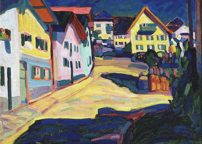 Upplev Wassily Kandinskys banbrytande verk "Murnau, Burggrabenstrasse 1" från 1908. Denna tavla är ett fängslande exempel på tidig modern konst, där Kandinsky med djärva penseldrag och levande, nästan abstrakta färgfält, skapar ett dynamiskt landskap. Ett mästerverk som med akryl- och oljefärg visar vägen mot ren abstraktion.