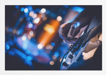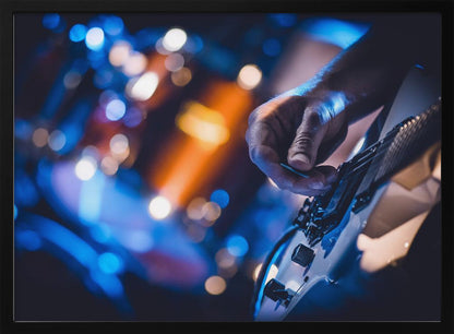 Upptäck kraften i musiken med denna fängslande poster av ajkabajka. Bilden, en närbild på en elgitarr under en livekonsert, fångar energin och känslan perfekt. De mjuka blå tonerna och den vackra bokeh-effekten skapar en drömsk och dynamisk atmosfär, vilket gör detta konsttryck till en hyllning till musikens själ.