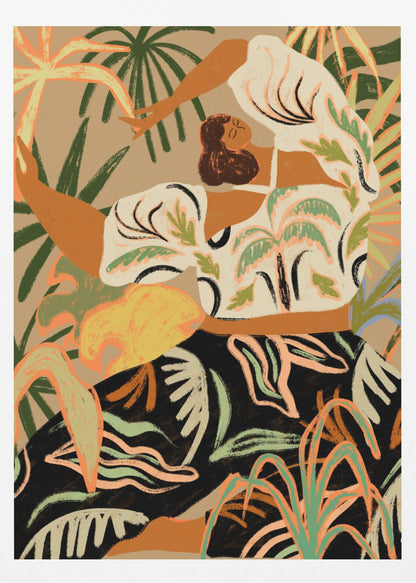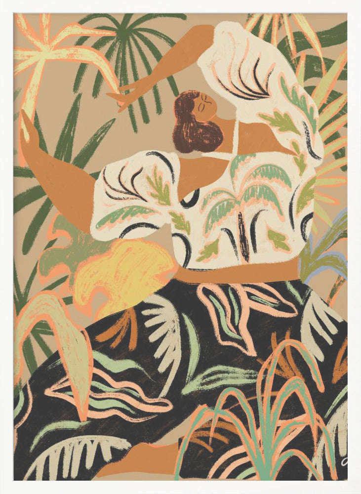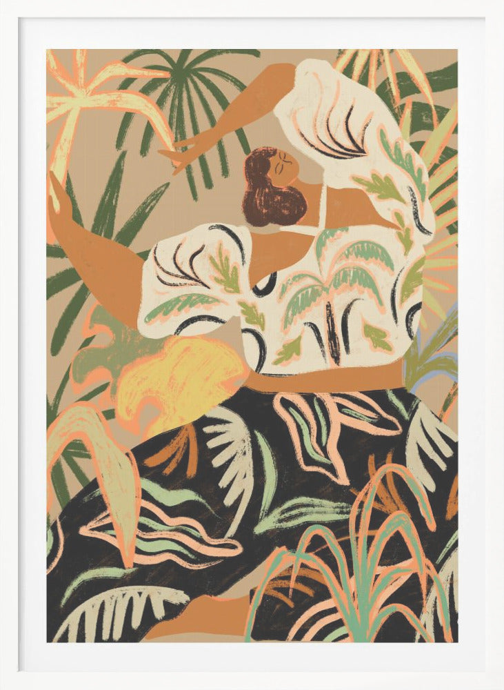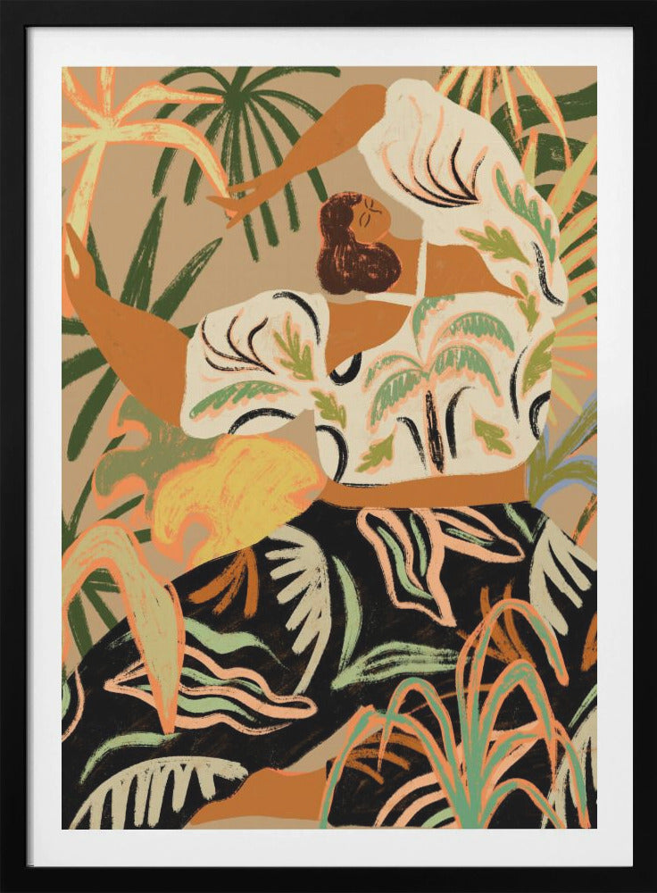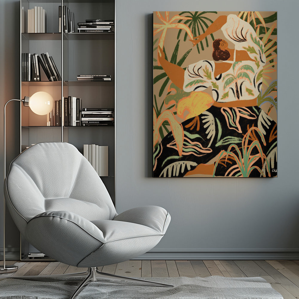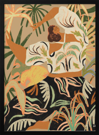 Låt dig omfamnas av "Nature Embrace", en fantastisk poster från Arty Guava. Detta abstrakta konstverk förenar färgstarka penseldrag med figurativa inslag, skapande en dynamisk representation av naturens frodiga skönhet och djungelns mystik. En lekfull mix av geometriska former och organiska mönster ger liv åt ytan, där varje detalj inbjuder betraktaren att upptäcka nya dimensioner.