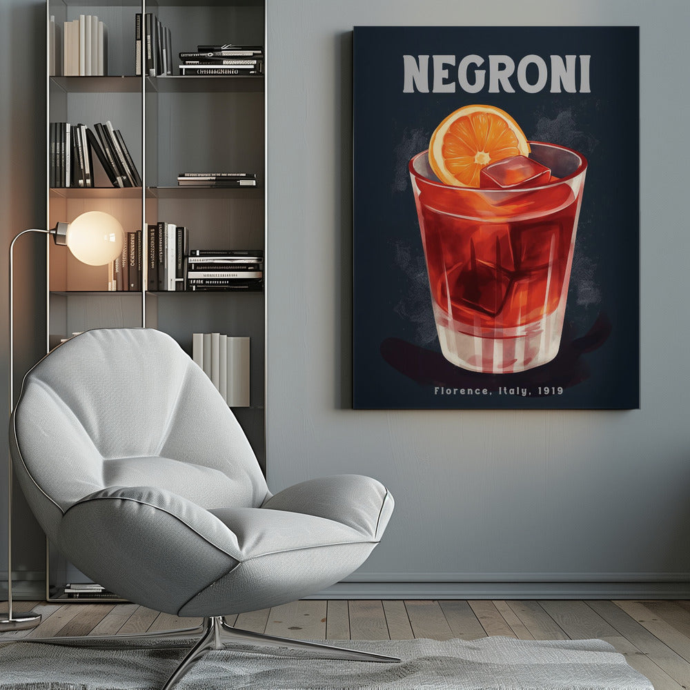 Andreas Magnussons verk Negroni Florence 2 fångar essensen av en klassisk italiensk cocktail med en modern twist. Detta konsttryck skildrar den ikoniska drinken i en elegant miljö, perfekt för att ge ditt kök, barhörna eller vardagsrum en sofistikerad och livfull känsla. Färgerna är rika och kompositionen inbjudande, vilket gör den till en sann blickfångare för varje drinkälskare.