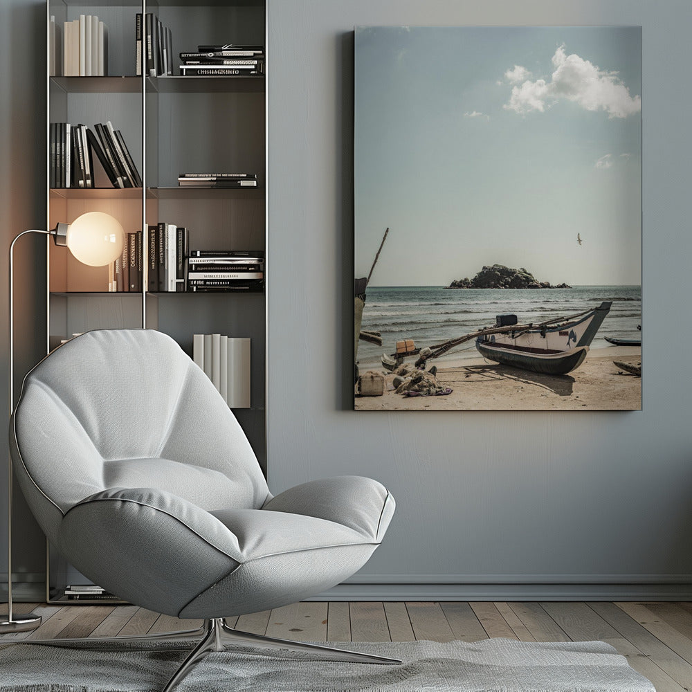 "Of the Sea" av Shot by Clint fångar perfekt lugnet vid havet. Denna affisch och konsttryck visar upp en harmonisk kustlinje med stilla vatten, mjuka moln och en avlägsen horisont. De subtila nyanserna och den balanserade kompositionen skapar en känsla av ro och stillhet, perfekt för att förvandla ditt hem till en fridfull oas. Ett tidlöst motiv som framkallar en känsla av lugn och evighet.
