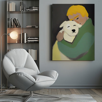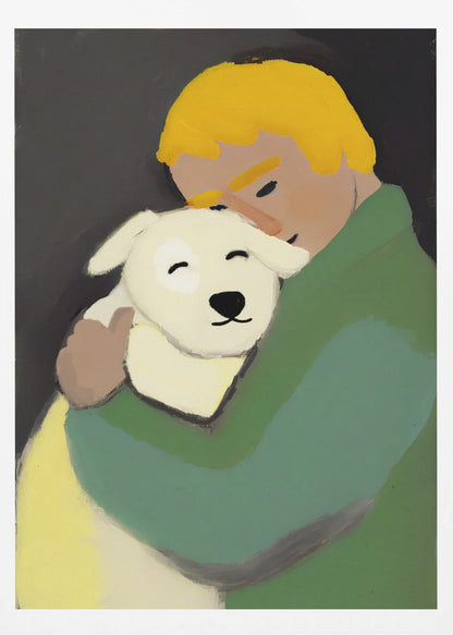 Från Treechild kommer denna hjärtvärmande poster, "Oh My Dog", som skildrar den obeskrivliga kärleken mellan människa och hund. Det figurativa konstverket fångar en öm kram, med mjuka penseldrag som ger liv åt djurets och personens känslor. En målning som utstrålar glädje och tillgivenhet.