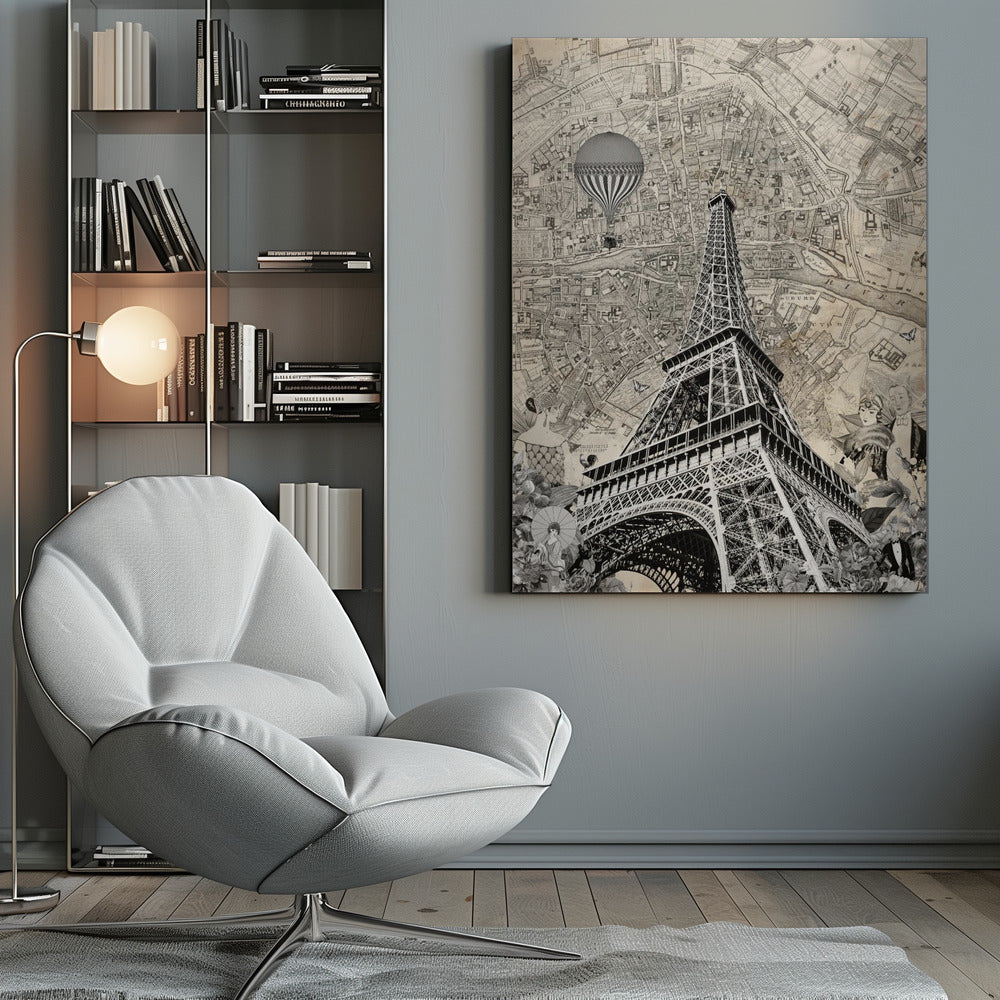Upptäck Paris magi genom Simon Goggins fängslande verk "Paris 2 (City Breaks)". Denna poster är en charmig tolkning av den ikoniska staden, som en tidlös retro reseafficch. Låt dig förföras av den unika grafiska stilen som fångar stadens romantiska själ, med det majestätiska Eiffeltornet och floden Seine som centrala element.