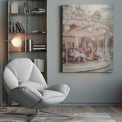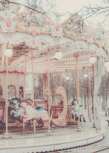 Denna charmiga poster 'Paris Carousel II' från Grace Digital Art Co fångar den magiska känslan av en parisisk karusell med sina mjuka pastellfärger i rosa och beige. Ett sagolikt konstverk som utstrålar lekfullhet och nostalgi, perfekt för barnrummet eller en inredning med drömsk touch.