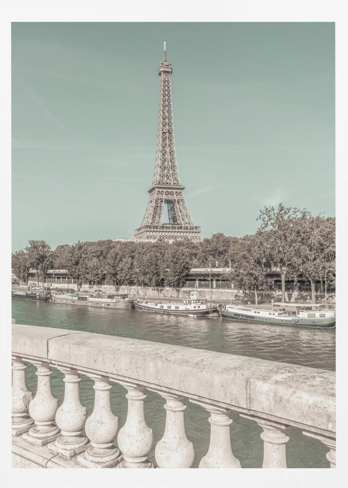 PARIS Eiffel Tower & River Seine | urban vintage style - Poster / Art Print