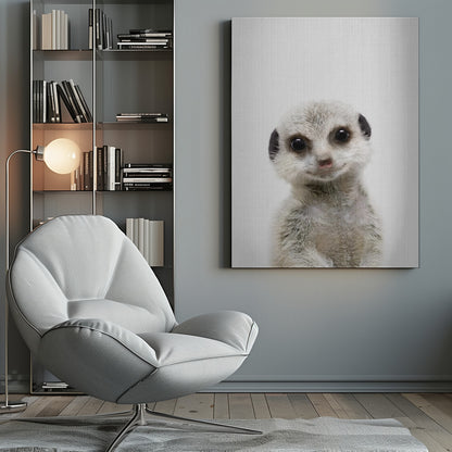 Lola Peacock presenterar stolt denna förtrollande Peekaboo Baby Meerkat poster, en illustration som fångar ögonblicket av nyfikenhet och charm. Det söta lilla djuret tittar fram med stora ögon mot en enkel bakgrund, vilket framhäver dess oskyldiga och lekfulla natur. Perfekt för barnrummet eller som en söt detalj i vilket hem som helst.