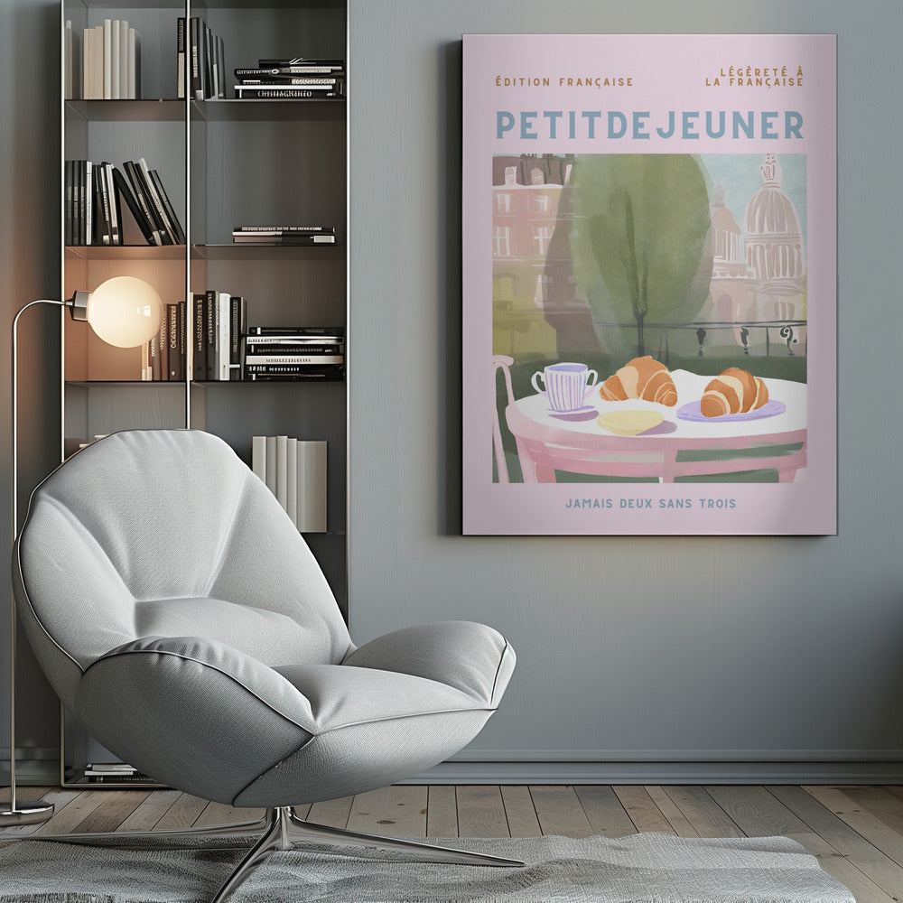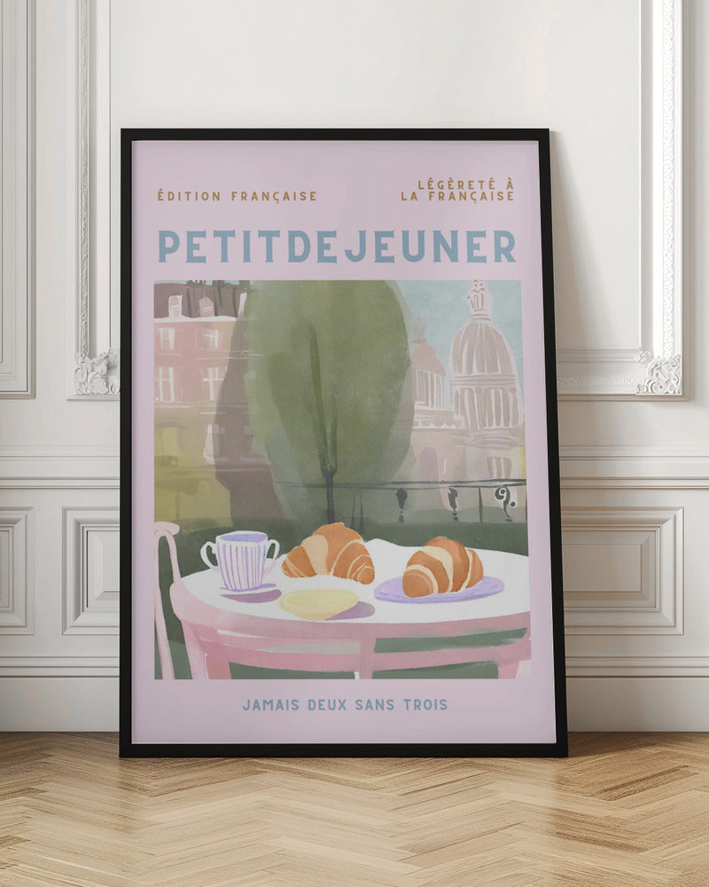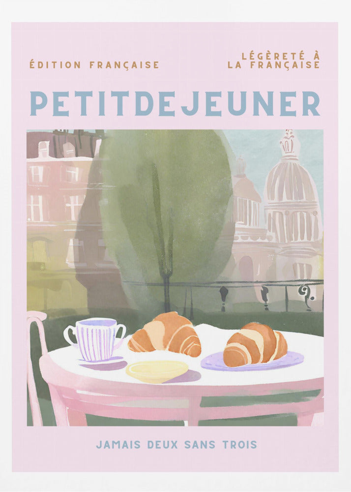 Låt dig förtrollas av Ohkimikos charmiga "Petit Dejeuner" affisch, som fångar den idylliska känslan av en parisisk morgon. Denna underbara tavla skildrar en mysig balkongscen med nybakade croissanter och ångande kaffe, perfekt för köket eller matplatsen. En hyllning till den franska frukostkulturen och den lugna stunden.