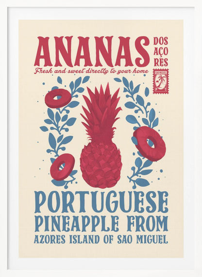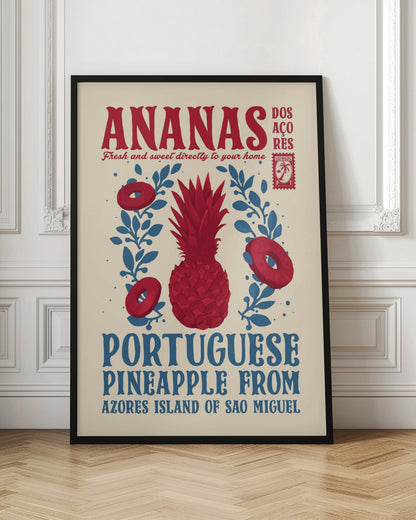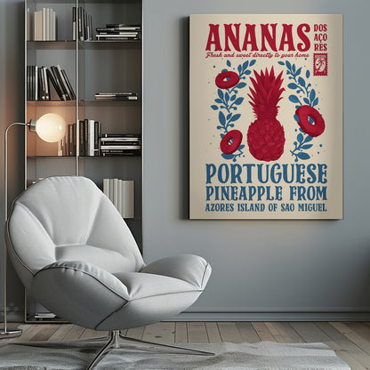 Förgyll ditt kök med denna charmiga ananasposter av Dion Gem. Detta retroinspirerade konstverk fångar ögat med sin livfulla kombination av rött och blått, som påminner om klassiska illustrationer. En perfekt mat- och dryckesposter som ger en känsla av nostalgi och en fräsch, lekfull touch till ditt hem.
