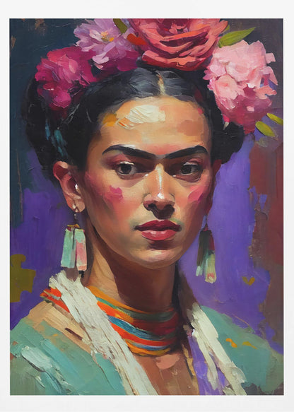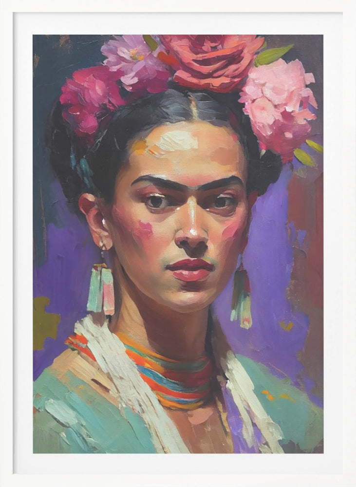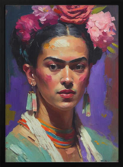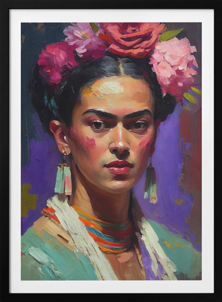 Låt dig förtrollas av Treechilds färgstarka tolkning i "Portrait Of Frida". Denna livfulla affisch fångar Fridas ikoniska skönhet med en modern twist av digital konst och grovmålning, där olja och levande färger smälter samman. Med vackra blommor och ett uttrycksfullt ansikte är detta porträtt en hyllning till kvinnlig styrka och konstnärlig passion. Ett riktigt blickfång som tillför färg och karaktär till varje rum.