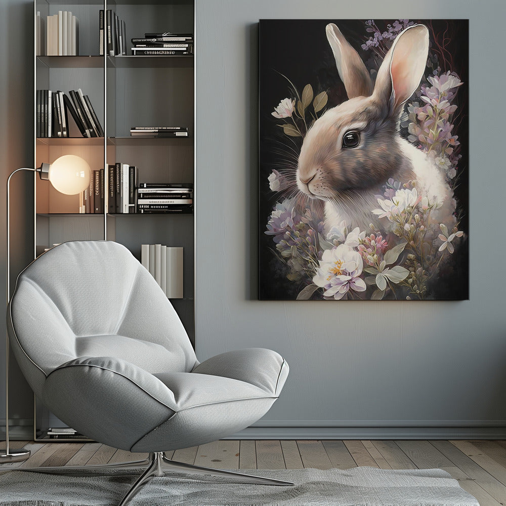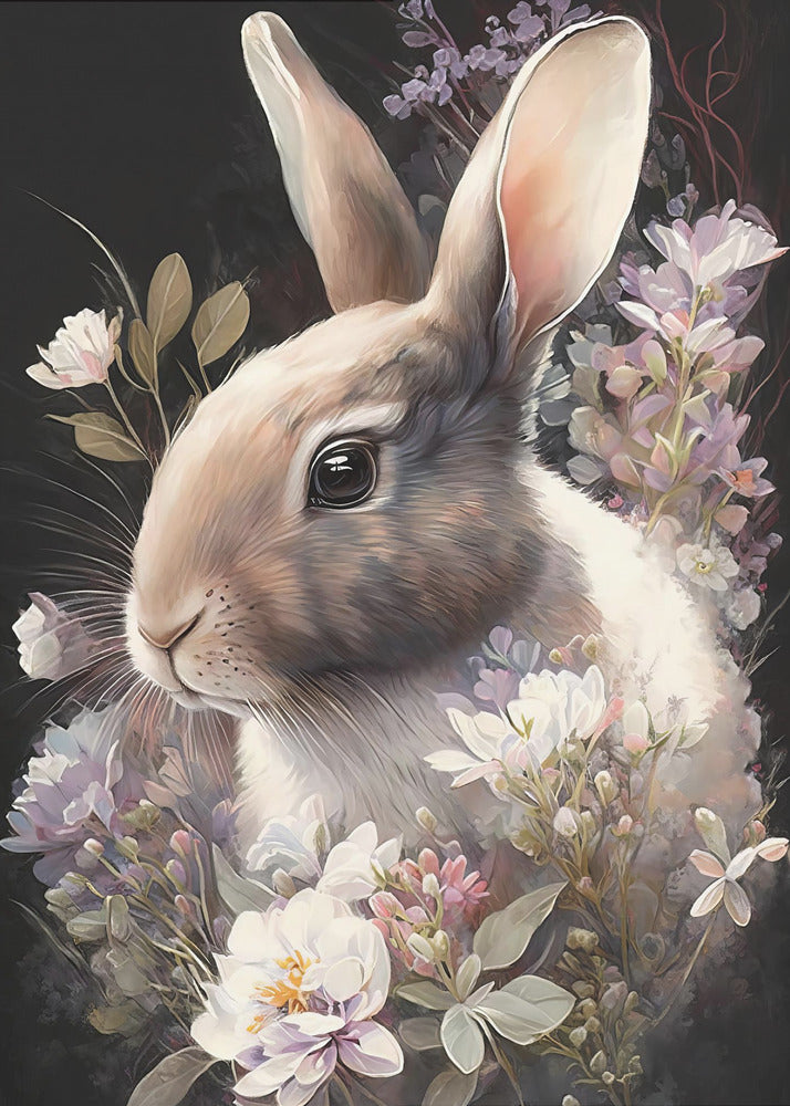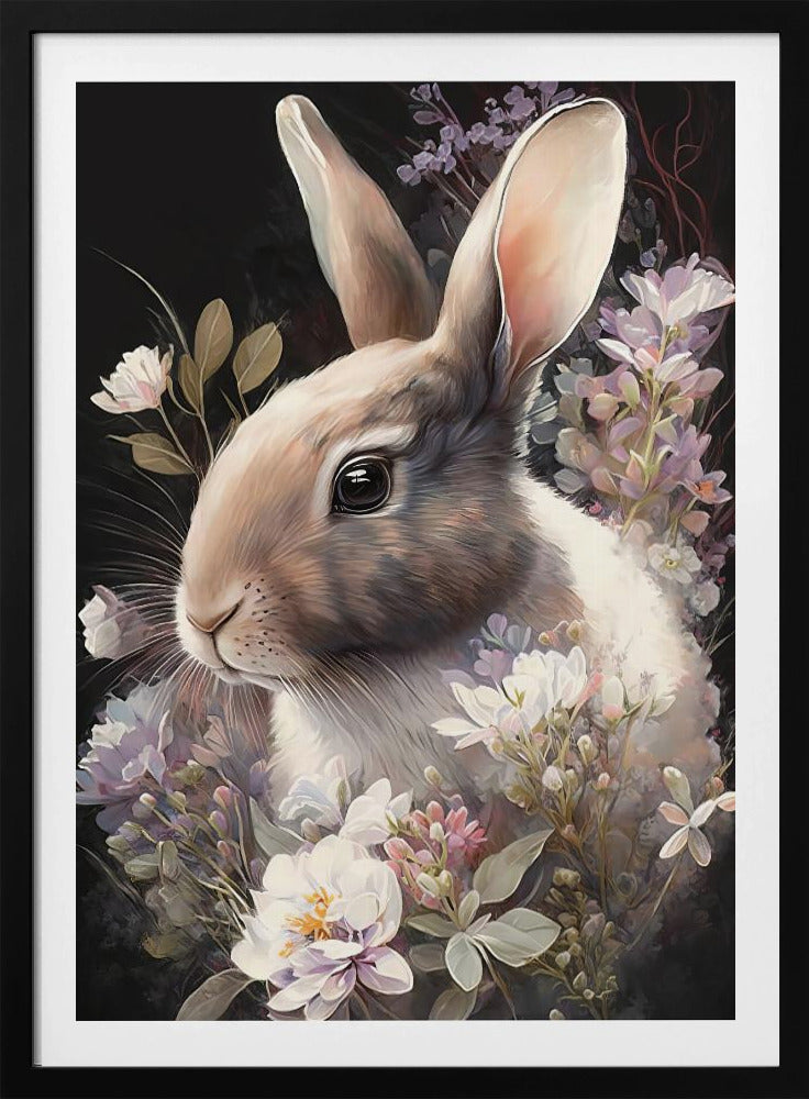 Upptäck den förtrollande "Rabbit and Flowers 3" av konstnären Bilge Paksoylu, en söt affisch som sprudlar av charm och lekfullhet. Denna unika art print visar en bedårande kanin omgiven av vackra, färgglada blommor, fångad i en drömsk och inbjudande stil. Perfekt för att addera en touch av naturens skönhet och barnslig glädje till vilket rum som helst, speciellt ett barnrum eller lekfullt heminredning.