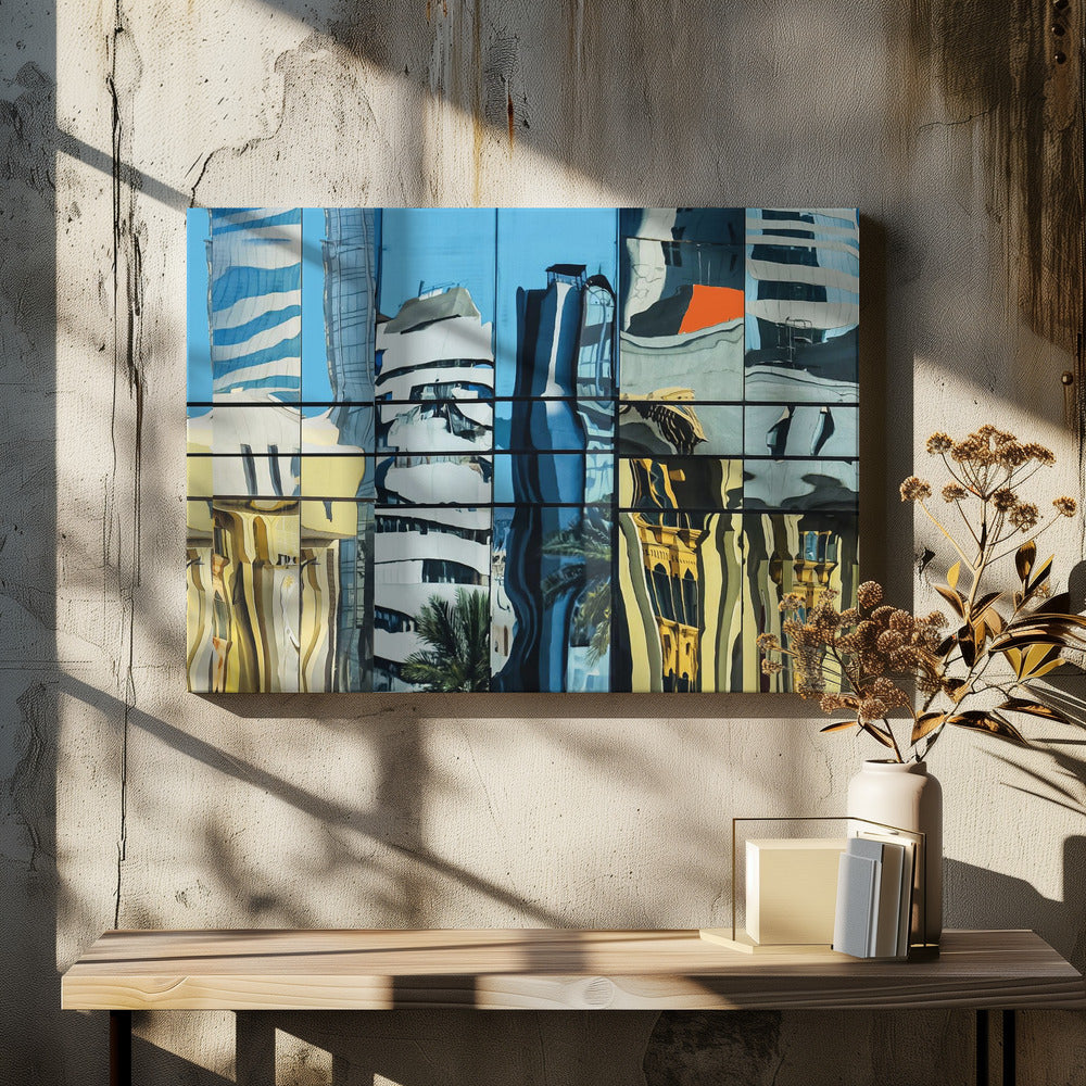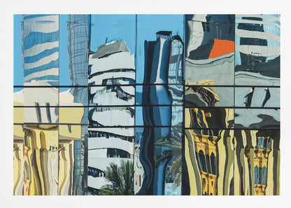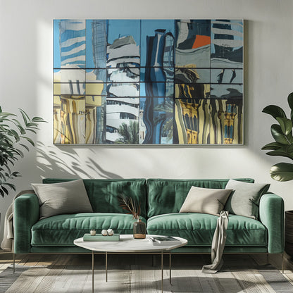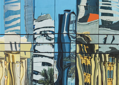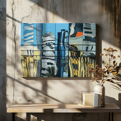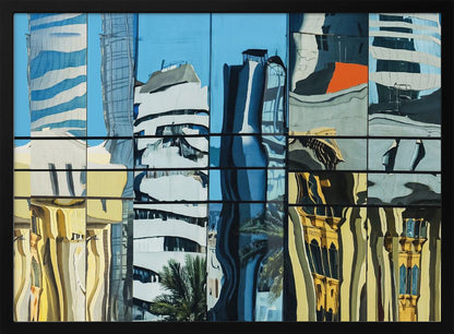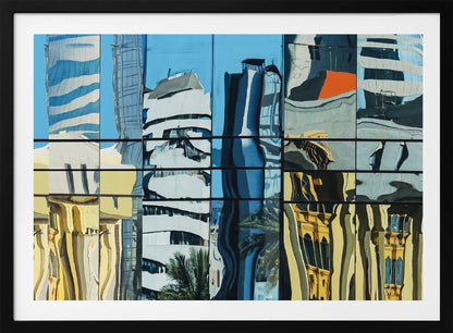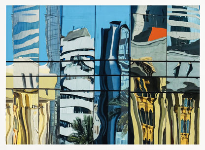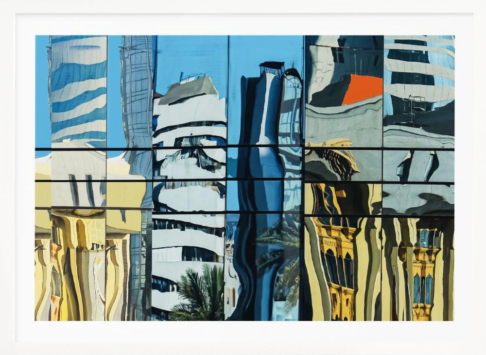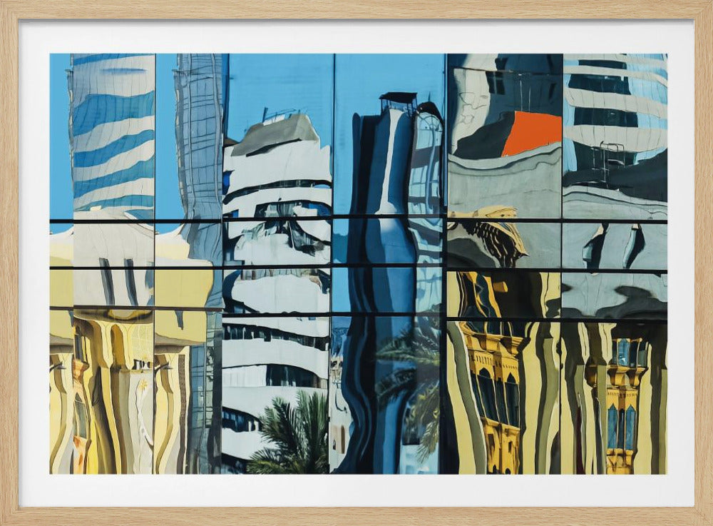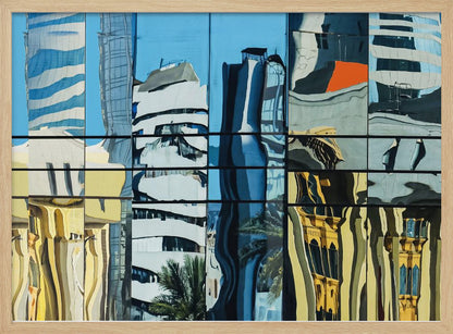 Reflektioner i glas - Dubai av Arnon Orbach fångar ögat med sin hypnotiserande abstraktion. Detta konsttryck förvandlar Dubais arkitektur till en symfoni av färgglada mönster och speglingar. Genom ett fönster ser vi stadens själ i ett dynamiskt spel mellan ljus och färg, vilket skapar en fascinerande och modern estetik. Perfekt för att ge ditt rum en unik och samtida känsla.