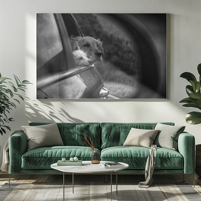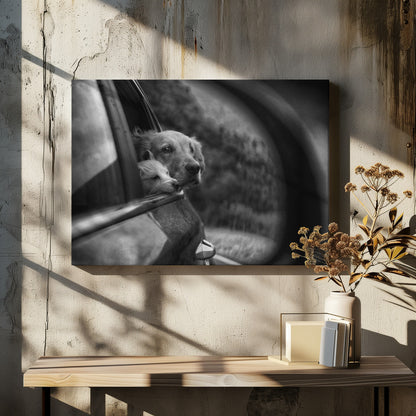 Följ med på en rolig bilresa med konstnären Roxana Labagnaras charmiga poster "Roadtrip"! Denna svartvita affisch fångar perfekt ögonblicket när en nyfiken hund kikar ut genom bilfönstret, full av förväntan. Det lekfulla uttrycket och de fina detaljerna gör detta konsttryck till en härlig inredningsdetalj som sprider glädje och humor i varje rum.