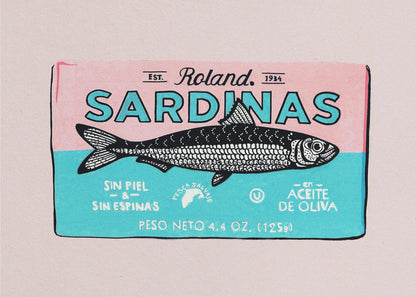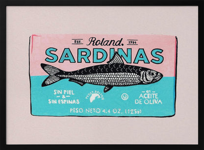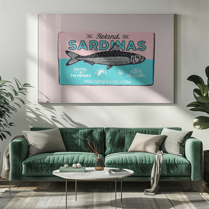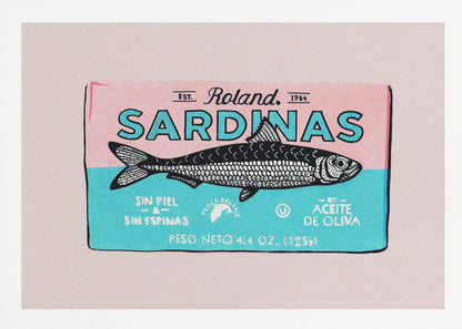 Denna charmiga "Roland Sardinas" poster från Studio Mandariini fångar ögat med sin unika illustration av fisk i en burk, presenterad med en härlig retrokänsla. Dess handmålade estetik och varma, inbjudande toner skapar en nostalgisk atmosfär som passar perfekt i köket eller matplatsen.