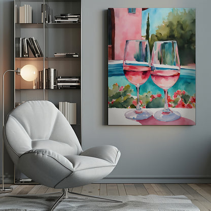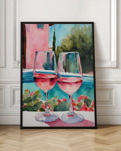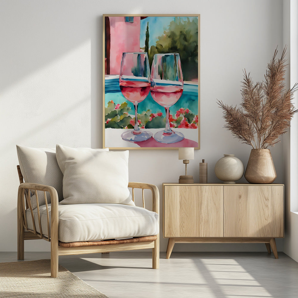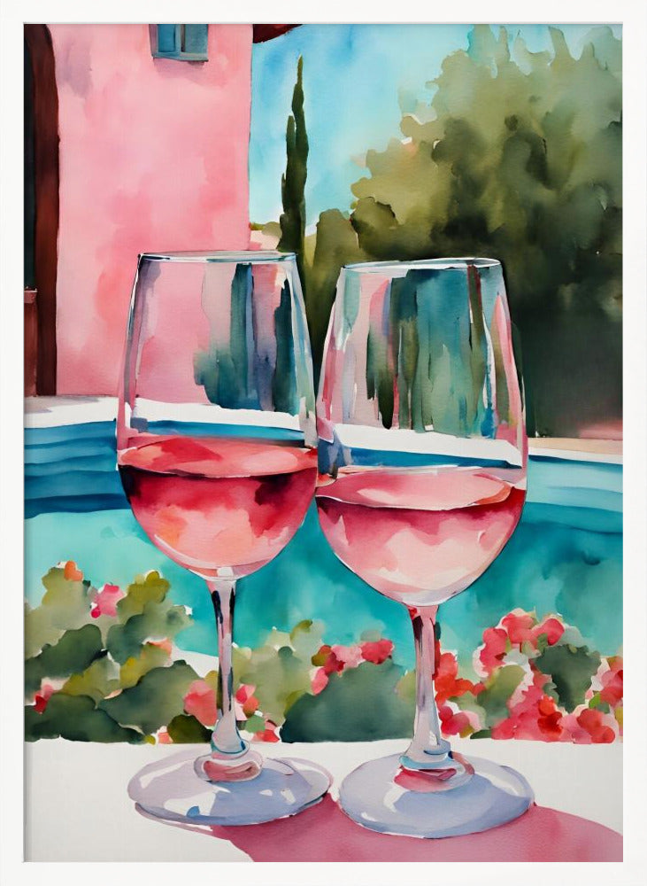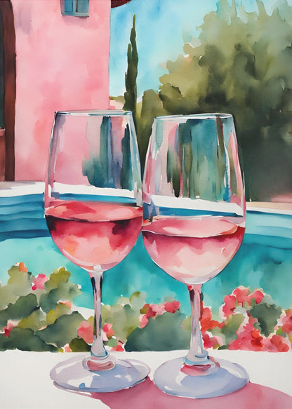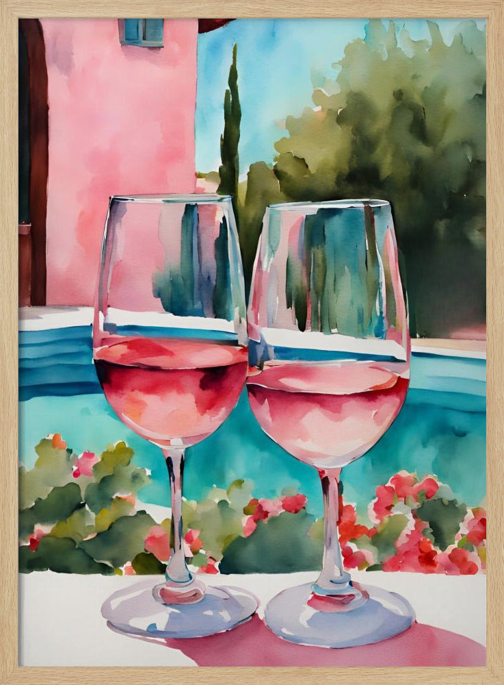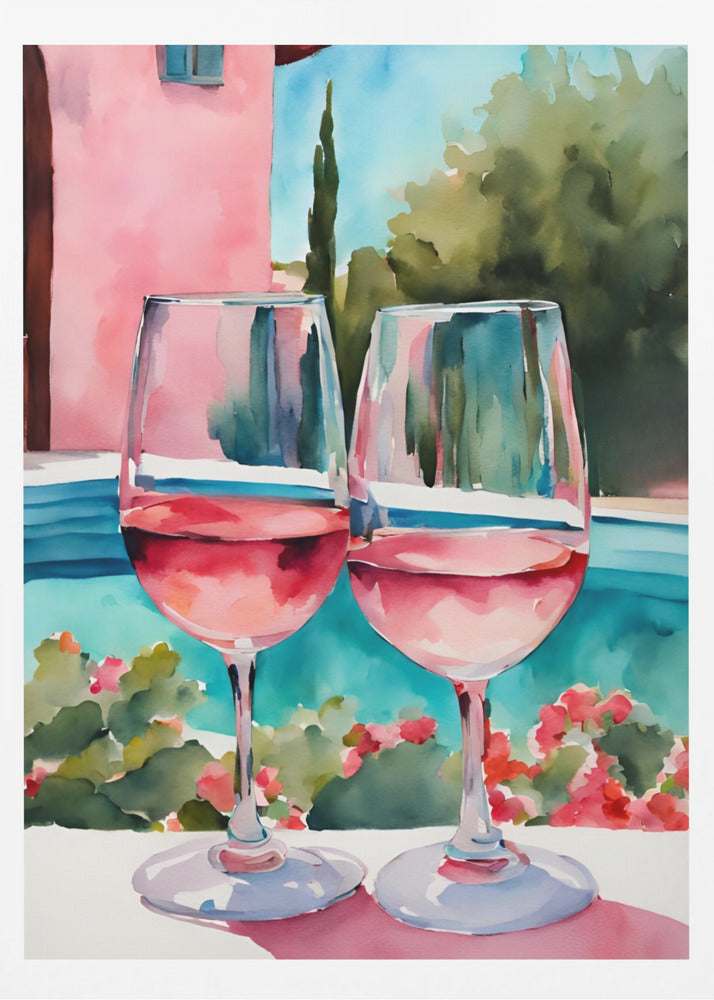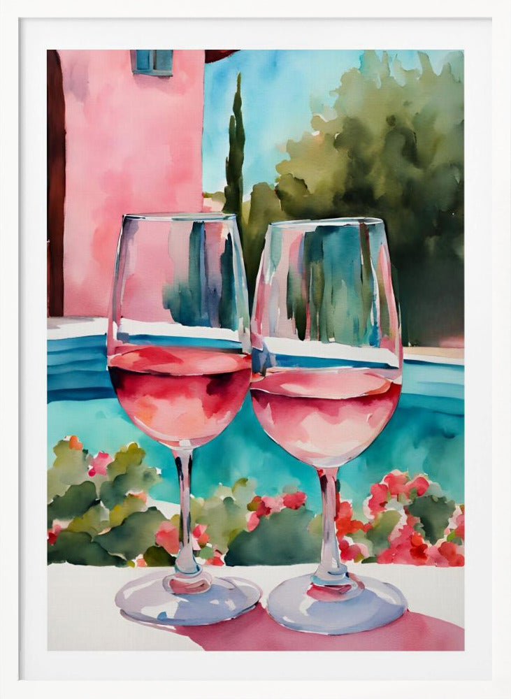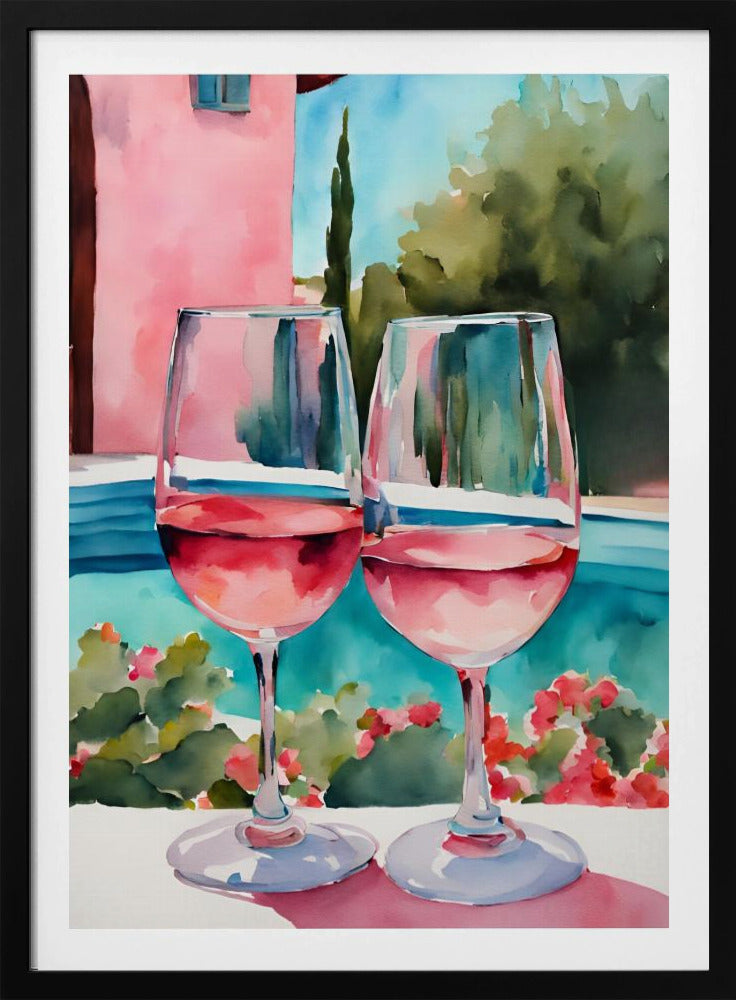 Låt dig förföras av Ohkimikos vackra konsttryck 'Rosé am Pool'. Denna affisch fångar den ultimata sommarkänslan med en elegant rosé i en inbjudande poolmiljö. Färgpaletten i mjuka rosa och akvamarinblå toner skapar en lugn och exklusiv atmosfär, perfekt för att ge ditt kök eller vardagsrum en touch av medelhavslyx och avkoppling. En perfekt påminnelse om soliga semesterdagar och livets goda.