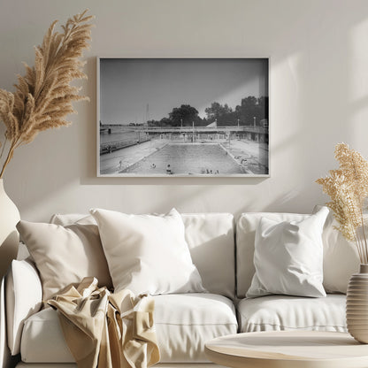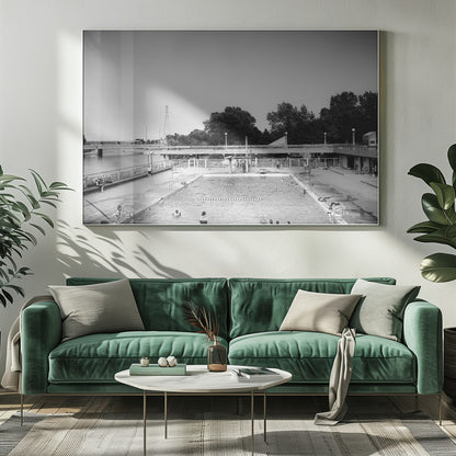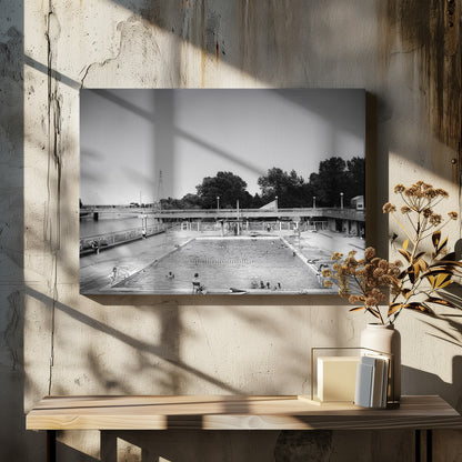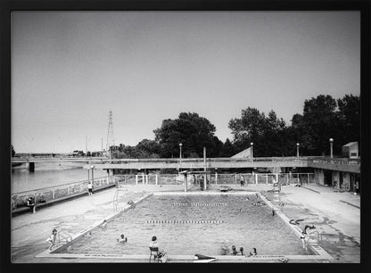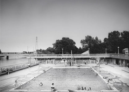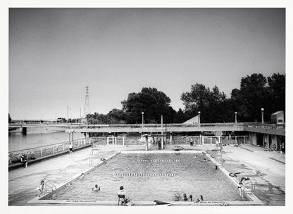 Christopher Méthots "Sans titre" fångar ett tidlöst ögonblick av urban simning med en slående svartvit estetik. Denna dokumentära bild framhäver arkitekturens rena linjer och människors närvaro i stadsbilden, skapar en känsla av lugn och rörelse. Den monokroma paletten förstärker dramatiken och ger motivet en konstnärlig och reflekterande karaktär.
