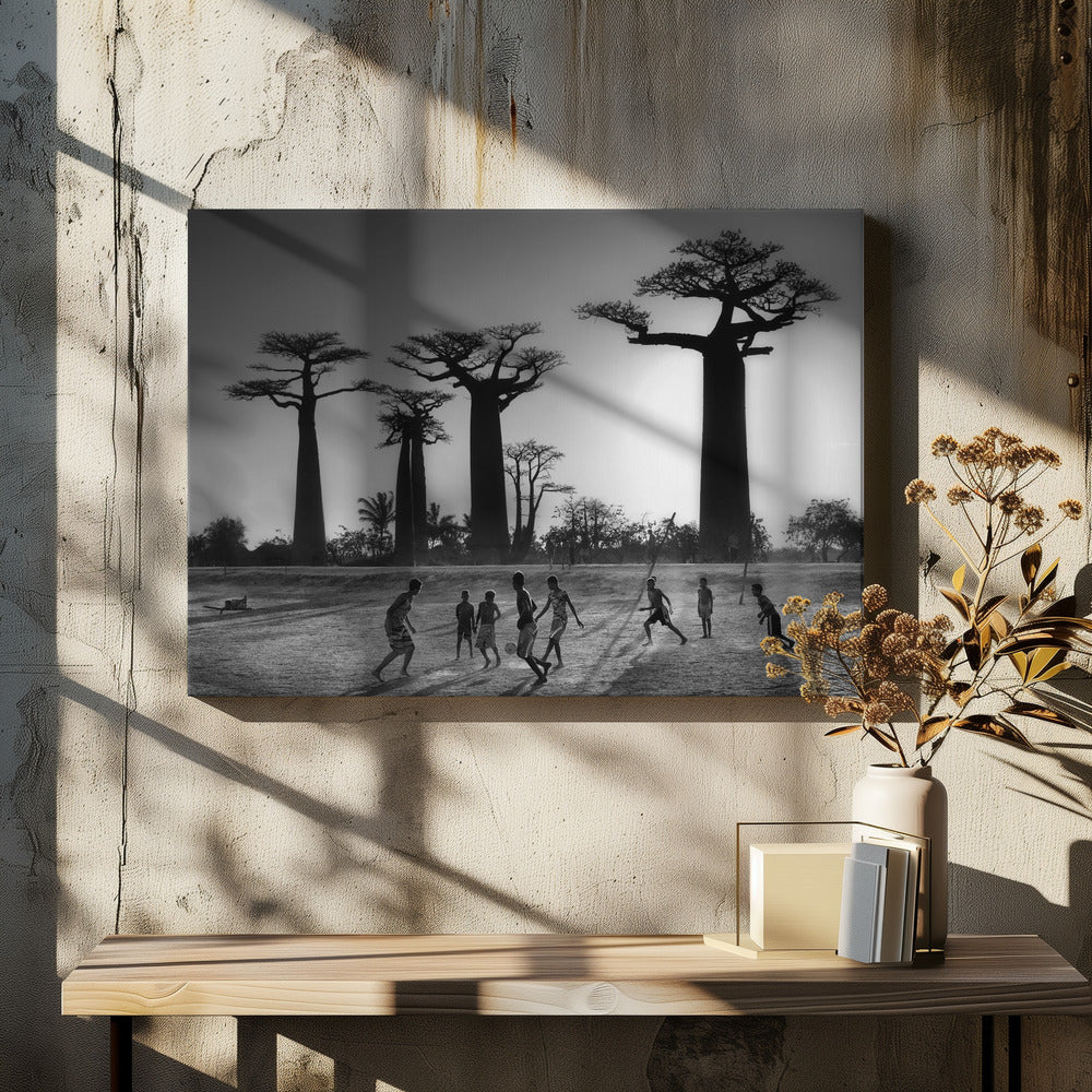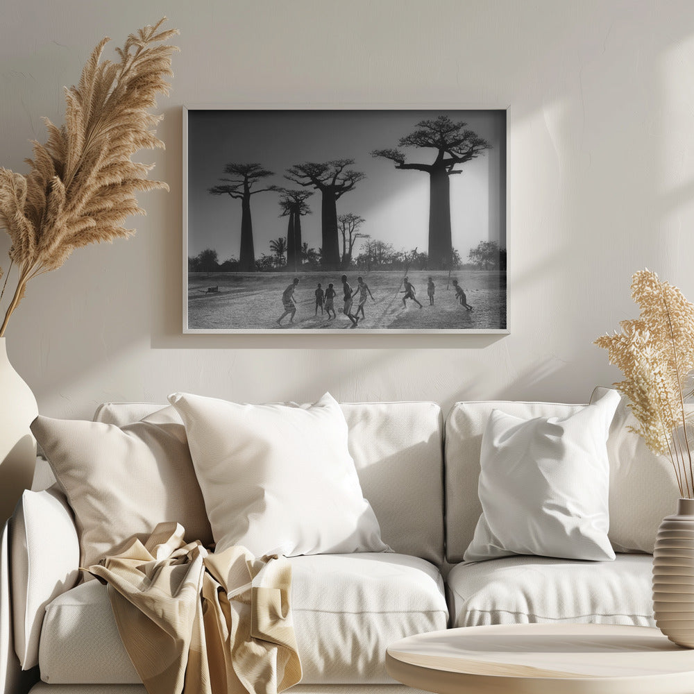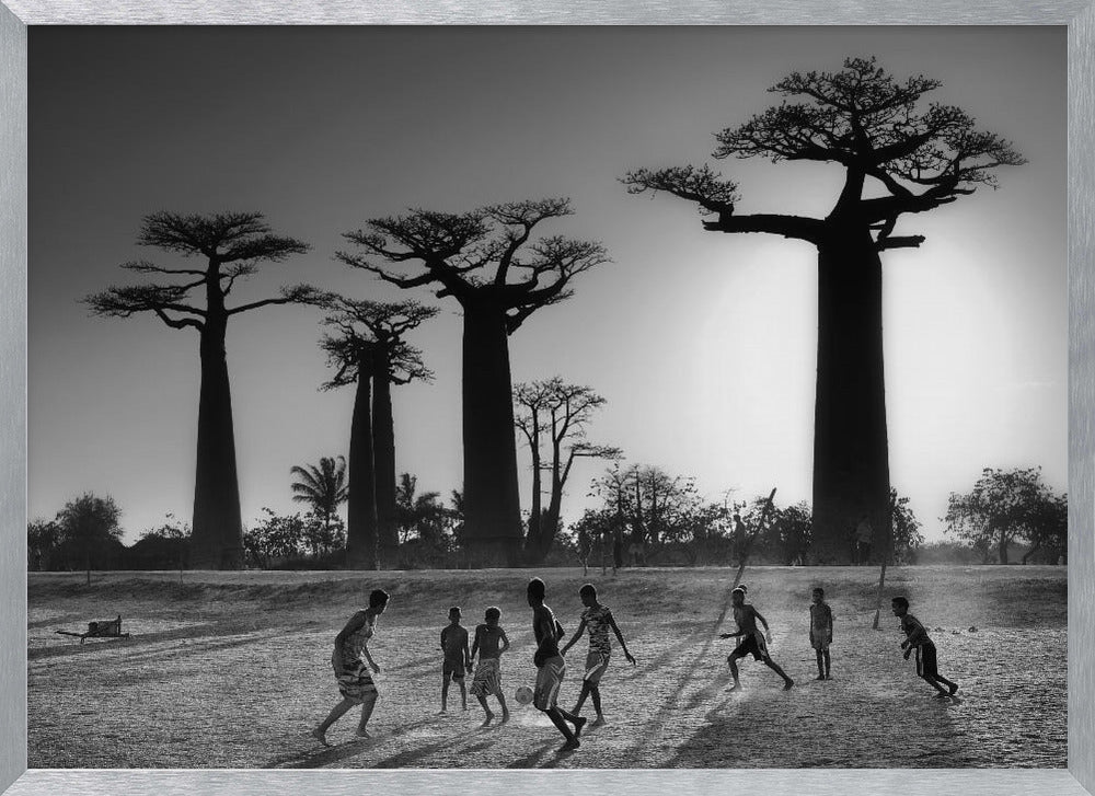 Konstnären Marc Apers fångar den dramatiska spänningen i "Soccer at sunset". Denna dynamiska poster visualiserar fart och rörelse med en spelare i full sprint, mot en nedgående sol. Färgerna skapar en energisk atmosfär som ger liv åt varje rum. Ett perfekt konstverk för fotbollsälskaren!