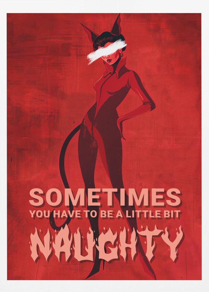Låt dig inspireras av Andreas Magnussons provokativa konsttryck "Sometimes you have to be a little bit naughty". Denna affisch fångar en djärv kvinnlig figur med horn, klädd i rött, som utstrålar både lekfullhet och styrka. Den grafiska stilen och texten skapar en iögonfallande och tankeväckande design.