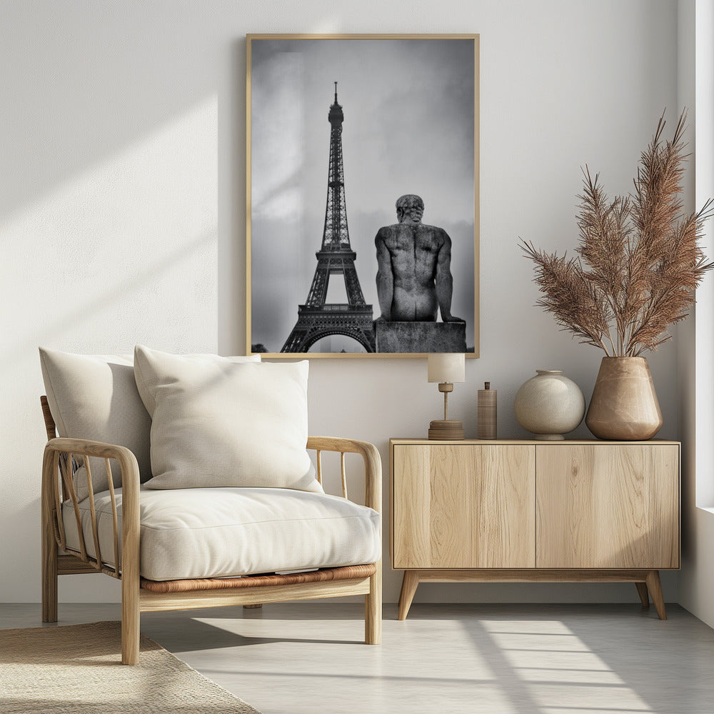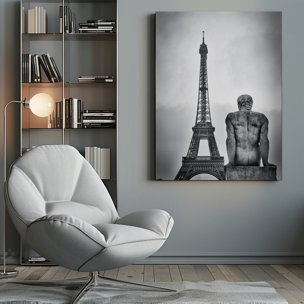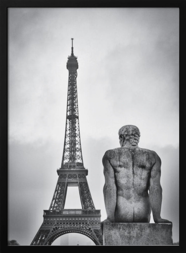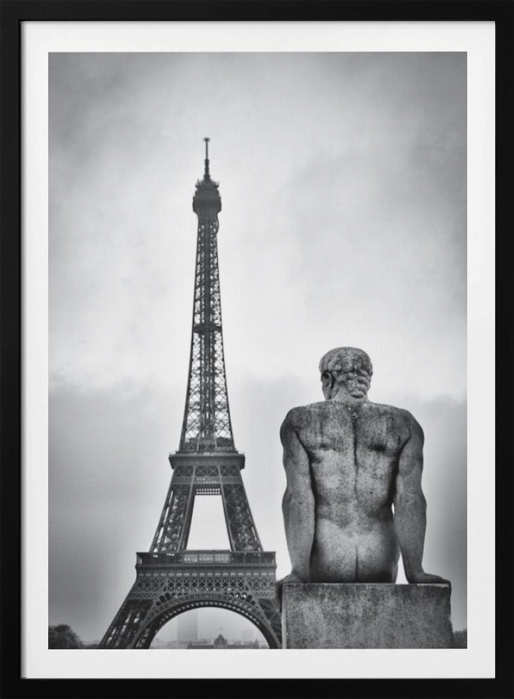 Denna slående affisch, skapad av Guillaume Vigoureux, fångar essensen av en ikonisk stålkonstruktion med en dramatisk och monokrom estetik. Bilden, med sin djupa svarta och vita kontrast, framhäver arkitekturens komplexitet och skapar en känsla av storslagenhet och tidlöshet. Perfekt för den som älskar arkitektur, stadsmotiv och konst med ett kraftfullt uttryck.