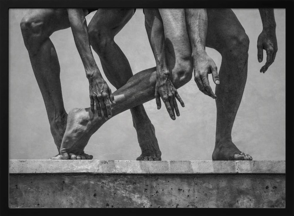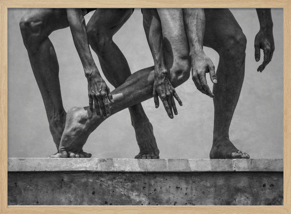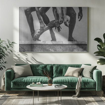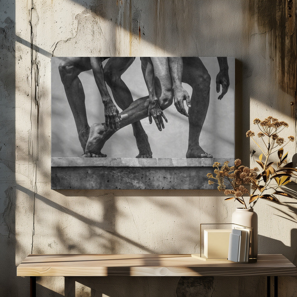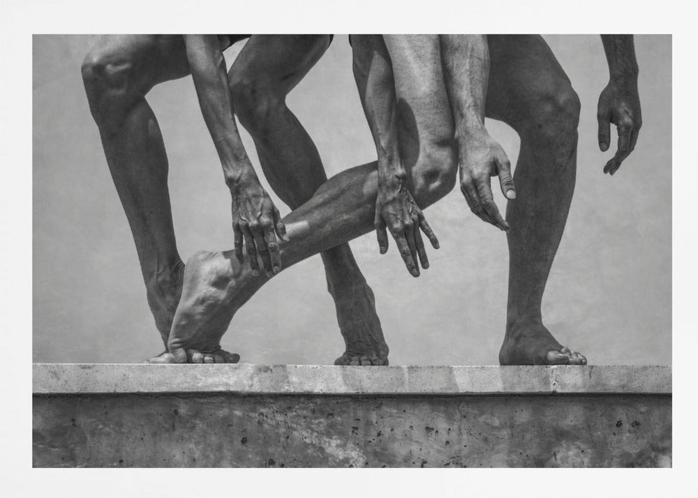 Denna fängslande poster, skapad av Antonio Arcos aka fotonstudio, fångar essensen av rörelse och form. "Stone Dance" är en abstrakt tolkning där den mänskliga kroppens elegans möter betongens råa, industriella estetik. Med enastående svartvita kontraster framhävs en dynamisk kroppsskulptur som utför en balettliknande dans på en scen av sten. En verkligt monokrom upplevelse.